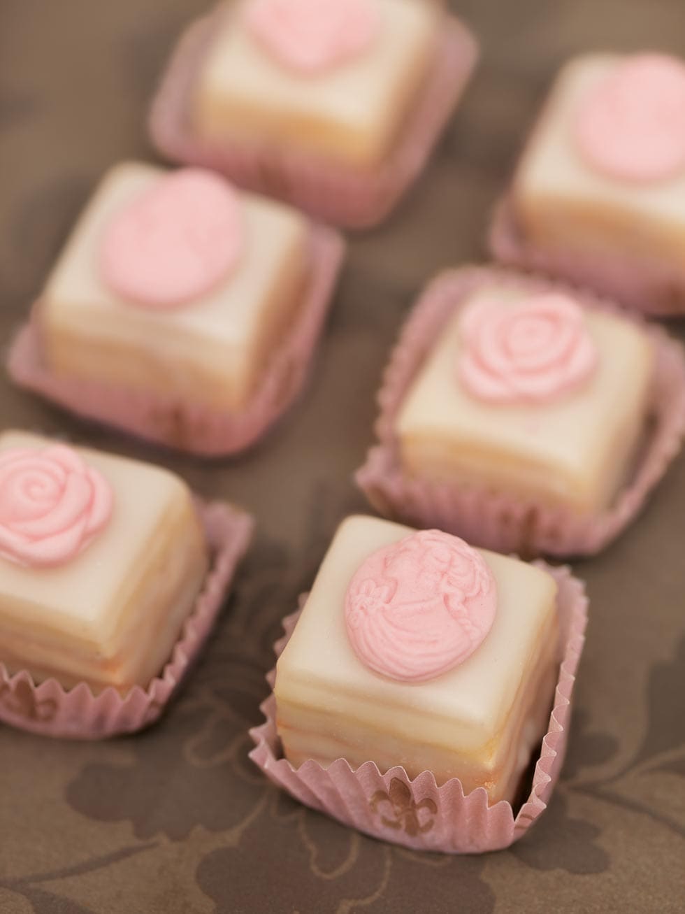 Kekse und Petit Fours mit selbst gemachtem Fondant-Dekor