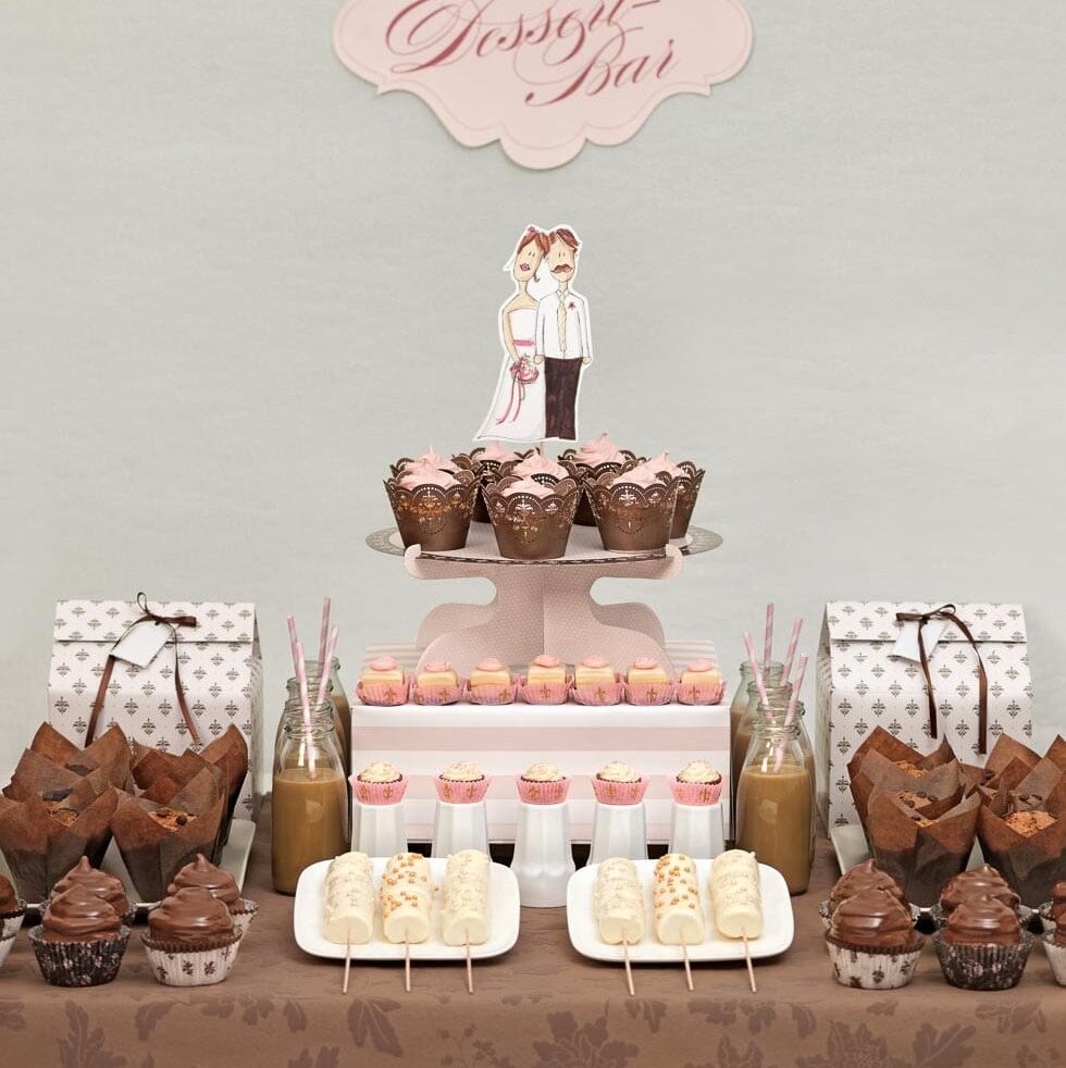 Es wird zum Kaffee oder als Dessert-Tisch aufgebaut und hat den Vorteil, dass sich jeder das aussuchen kann, worauf er gerade Lust hat: Zum Beispiel mit einer Auswahl aus verschiedenen Kuchen, Cupcakes, Cake Pops, Desserts, Keksen und Süßigkeiten.