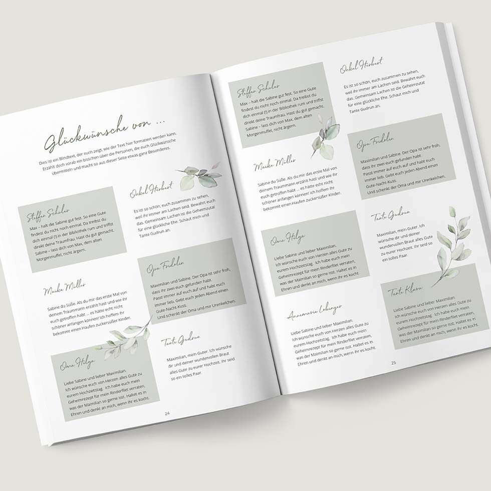 Ob im Gruß von der Redaktion, Beiträgen von Freunden oder Eltern oder liebevolle Glückwünsche besonderer Gäste und dem Brautpaar nahestehenden Personen – mit einem schönen Spruch als Abschluss oder Aufhänger für eure Gratulation wird das Schreiben noch einfacher.
