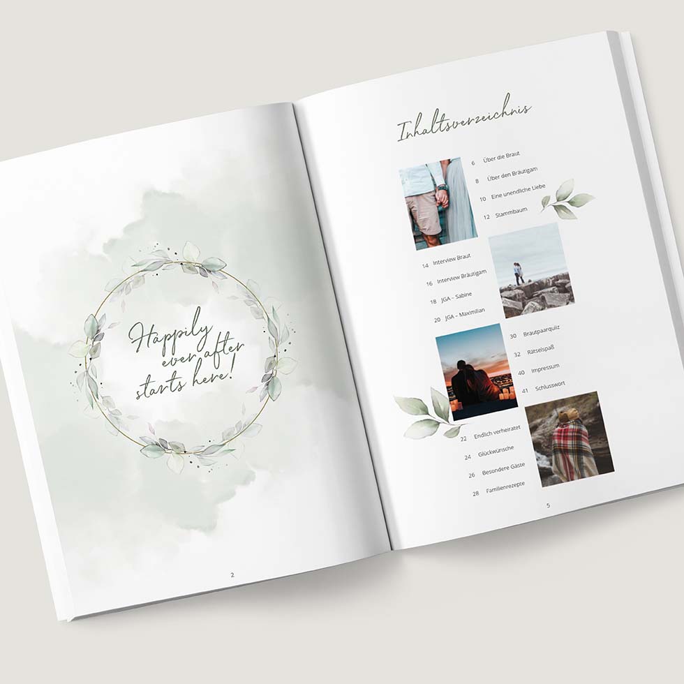 In unseren Design-Vorlagen für die Hochzeitszeitung haben wir deshalb für euch passende Ideen gestaltet, damit ihr nur noch euren Text einfügen und euch keine weiteren Gedanken um die Gestaltung machen müsst.