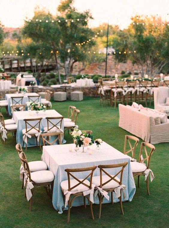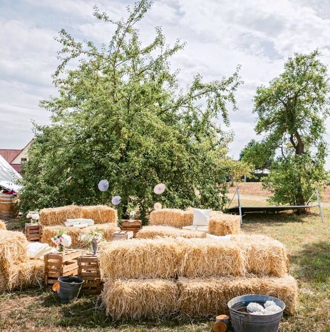 Wenn man einmal darüber nachdenkt, gibt es für Hochzeiten unendlich viele Möglichkeiten, um ungestört auf der Wiese ein rauschendes Fest zu feiern, das für jeden Hochzeitsstil ausreichend Gestaltungsspielraum bietet. Von rustikaler Pferdekoppel bis zur edlen Wiesenhochzeit auf einem Gutshof – mit einem Plan B für Schlechtwetter oder der passenden Zeltvariante geht alles (fast) überall und man sitzt trotzdem im Freien.