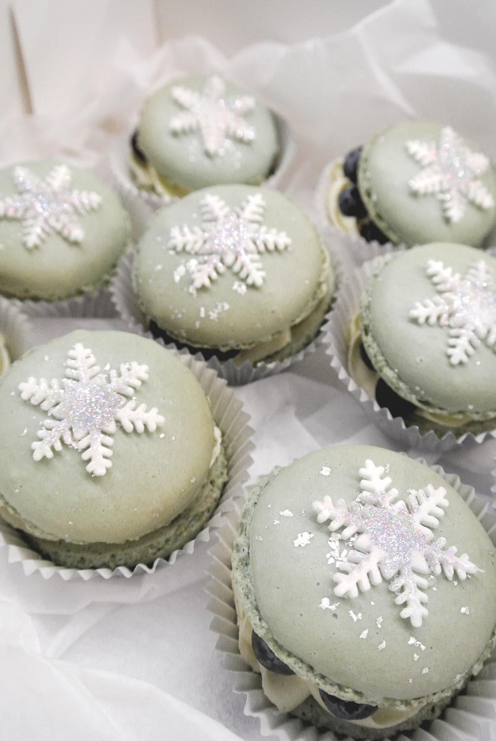 Mit Sternen aus Fondant und einem hübschen Tortentopper könnt ihr eure Hochzeitstorte ohne großen Aufwand in die schönste Wintertorte verwandeln. Sogar Macarons oder Donuts lassen sich mit den schnell gezauberten Eiskristallen im Handumdrehen verschönern.