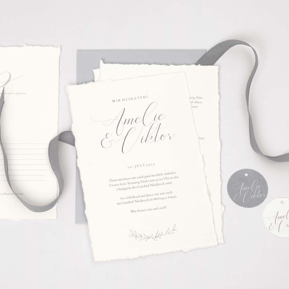 Bei der Gestaltung eurer Einladungskarten für die Winterhochzeit habt ihr die verschiedensten Möglichkeiten: Entweder ihr entscheidet euch für eine thematische Einbindung mit den oben genannten Elementen oder ihr wählt ein klassisches Papeterie-Design mit wunderschöner Kalligraphie oder eine Serie mit perfekt passenden Farben.