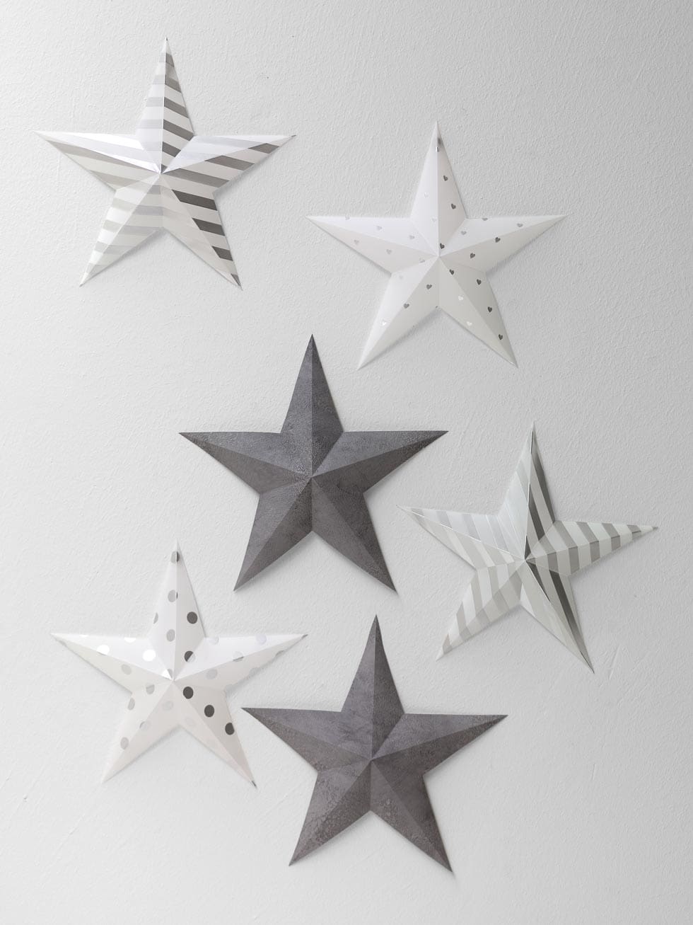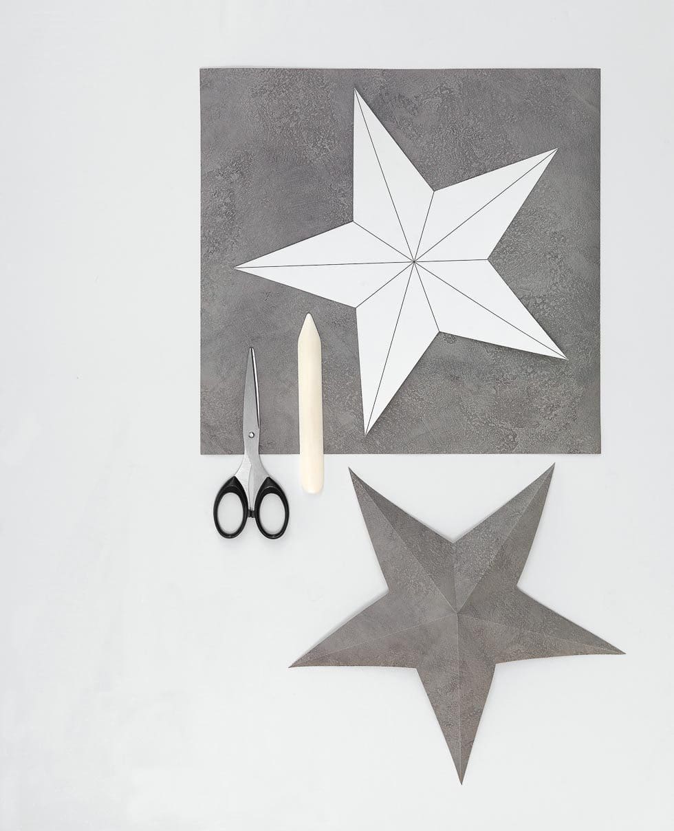 Wenn ihr den Hintergrund eurer Candybar oder Foto-Box dekoriert, wirken diese auf einfache Art wesentlich schöner. Ihr könnt sie ganz leicht aus Bastelpapier in Weiß, Silber oder Glitzer* oder Tapete herstellen. Erstellt euch dafür eine Schablone wie im Bild gezeigt und schneidet den Stern aus. Anschließend ein Lineal an den Linien anlegen und mit einem Falzbein nachziehen. Zum Schluss die langen Linien nach oben (o. außen) und die kurzen Linien nach unten (o. innen) falten. Schon ist euer Stern fertig, der mit Klebeknete an der Wand angebracht werden kann.