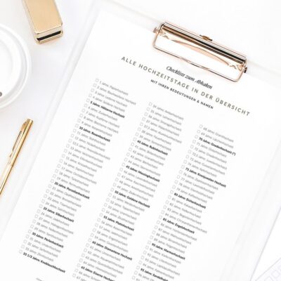 Hier findet ihr die Erklärung der Bedeutung aller Hochzeitsjubiläen sowie unzählige Ideen, die nächsten Hochzeitstage zu feiern. Mit tollen Geschenkideen, Sprüchen und vielem mehr: