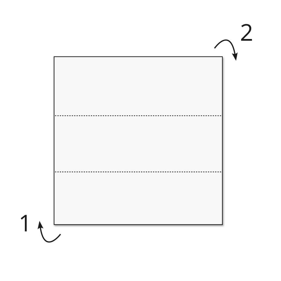 Verwendet eine Serviette in der Größe 40 x 40 cm. Faltet das untere Drittel der Serviette nach oben und klappt das obere Drittel anschließend darüber.