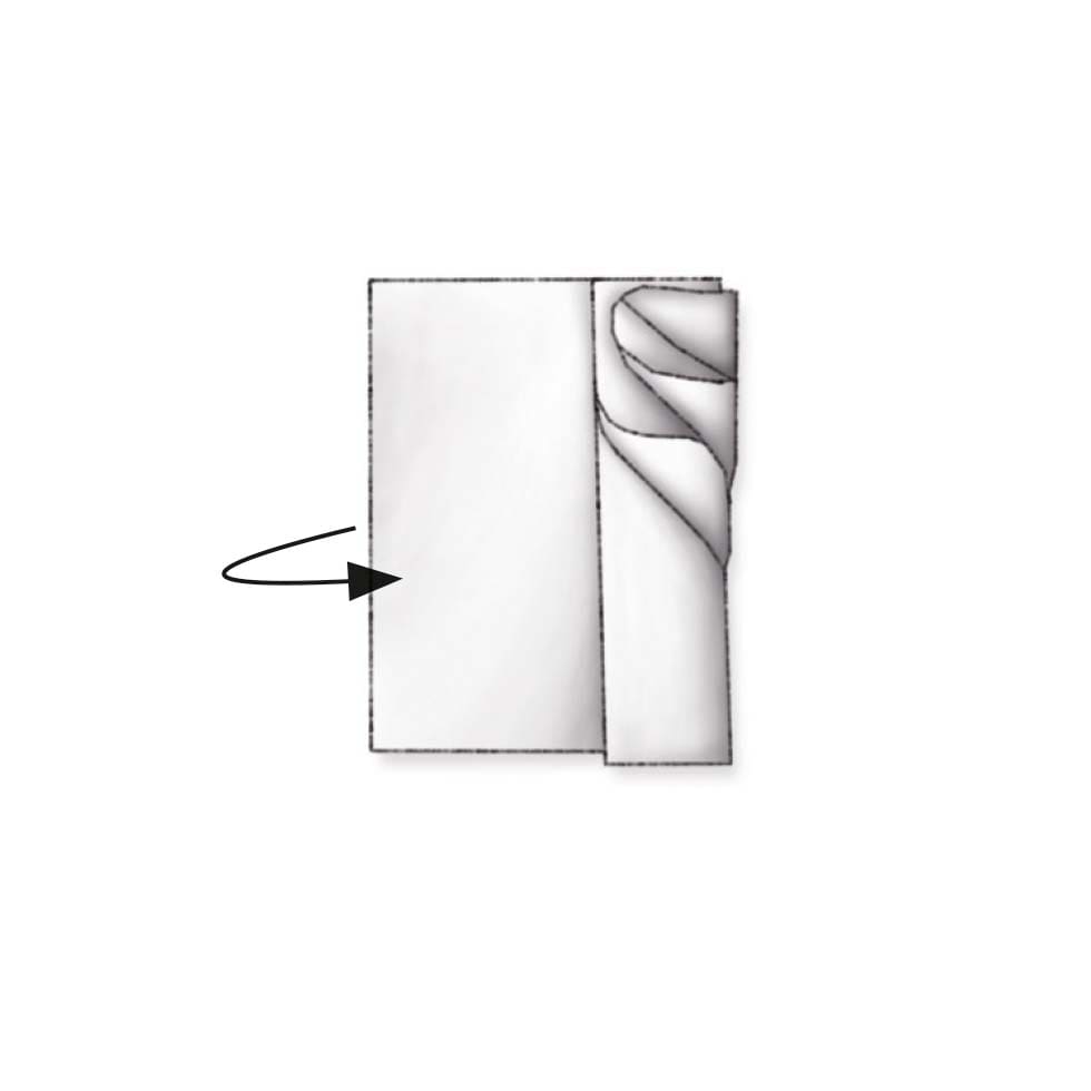 ..., dass sich die gewünschte Breite der fertigen Serviettenfaltung ergibt. Zum Schluss die Serviette vertikal umdrehen.