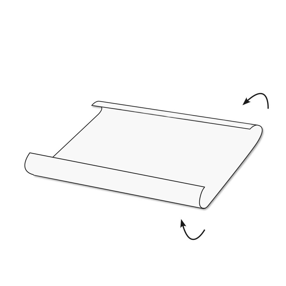 Alternativ kann die Rolle auch durch Büroklammern, die kaum sichtbar an beiden Enden der Rolle befestigt sind, zusammengehalten werden.