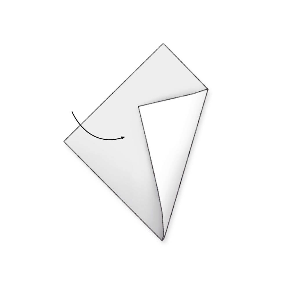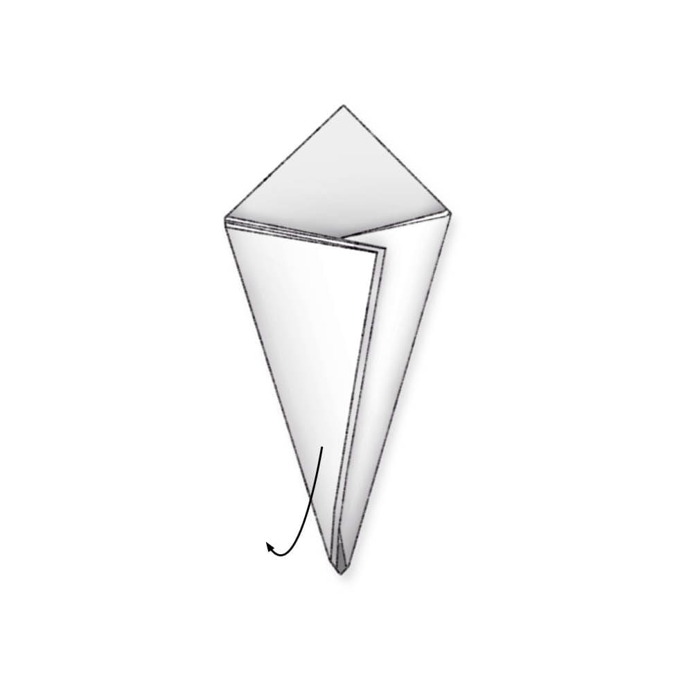 Die so entstandene untere Spitze fast bis zur oberen Spitze nach oben knicken …