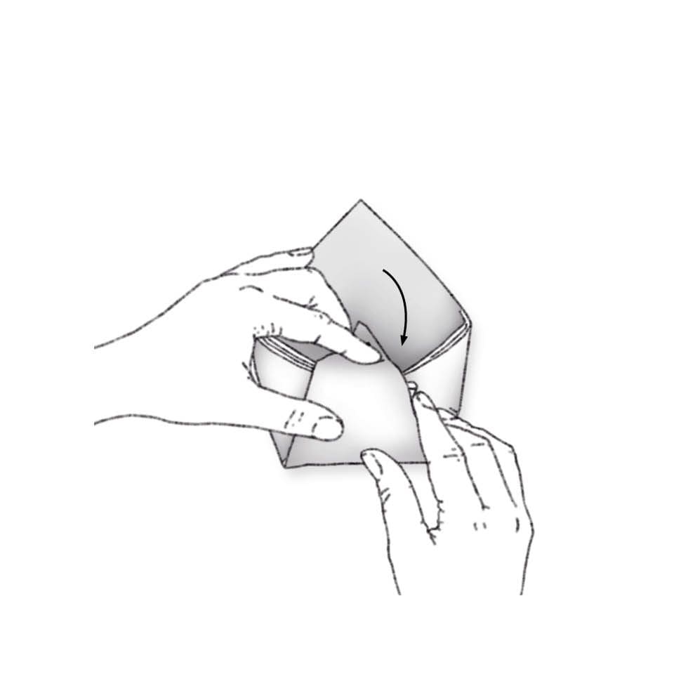 Die zusammengelegte Serviette mit der geöffneten Spitze nach oben zeigend vor sich legen.