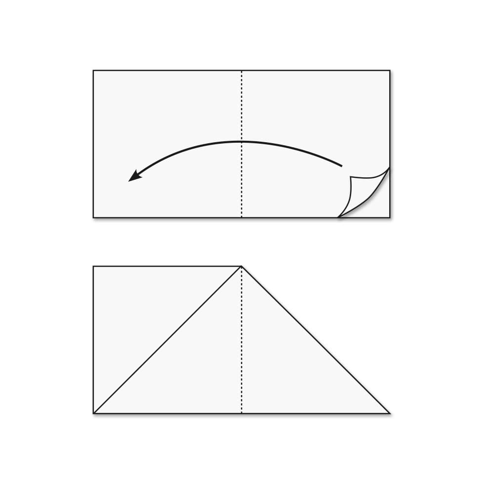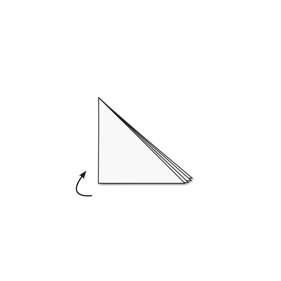Nun greift die rechte untere Ecke und legen sie auf die linke untere Ecke. Dabei entsteht ein gefaltetes Dreieck an der oberen Lage.