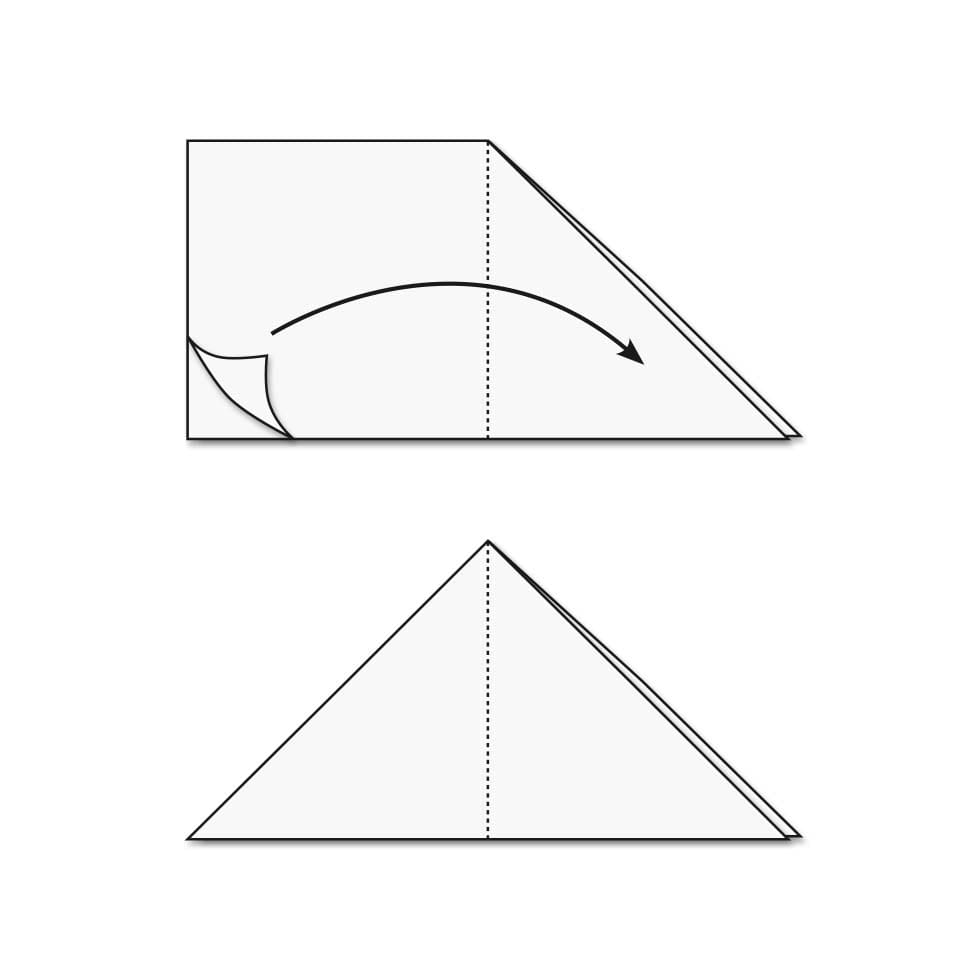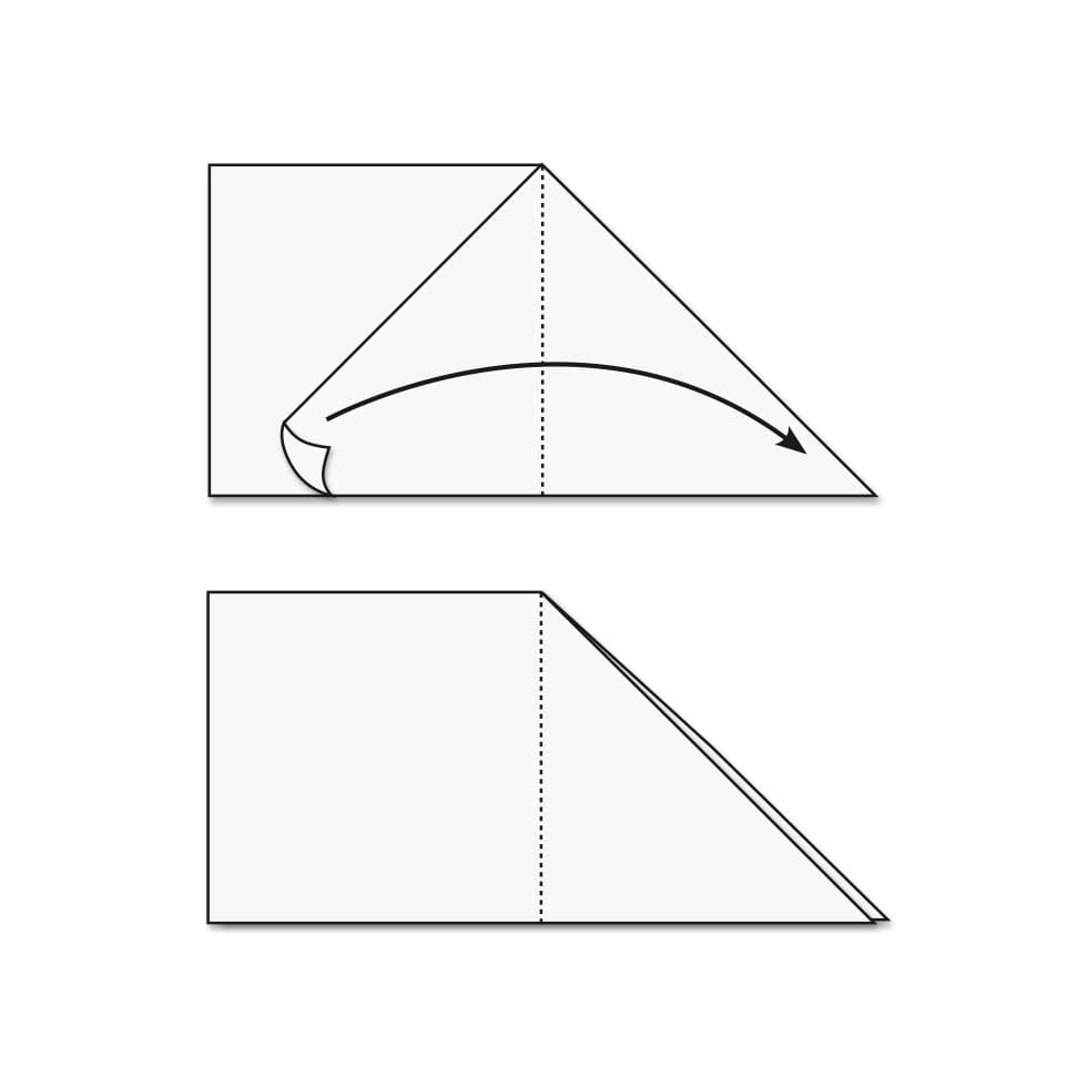 Faltet jetzt das linke Dreieck der oberen Lage nach rechts.