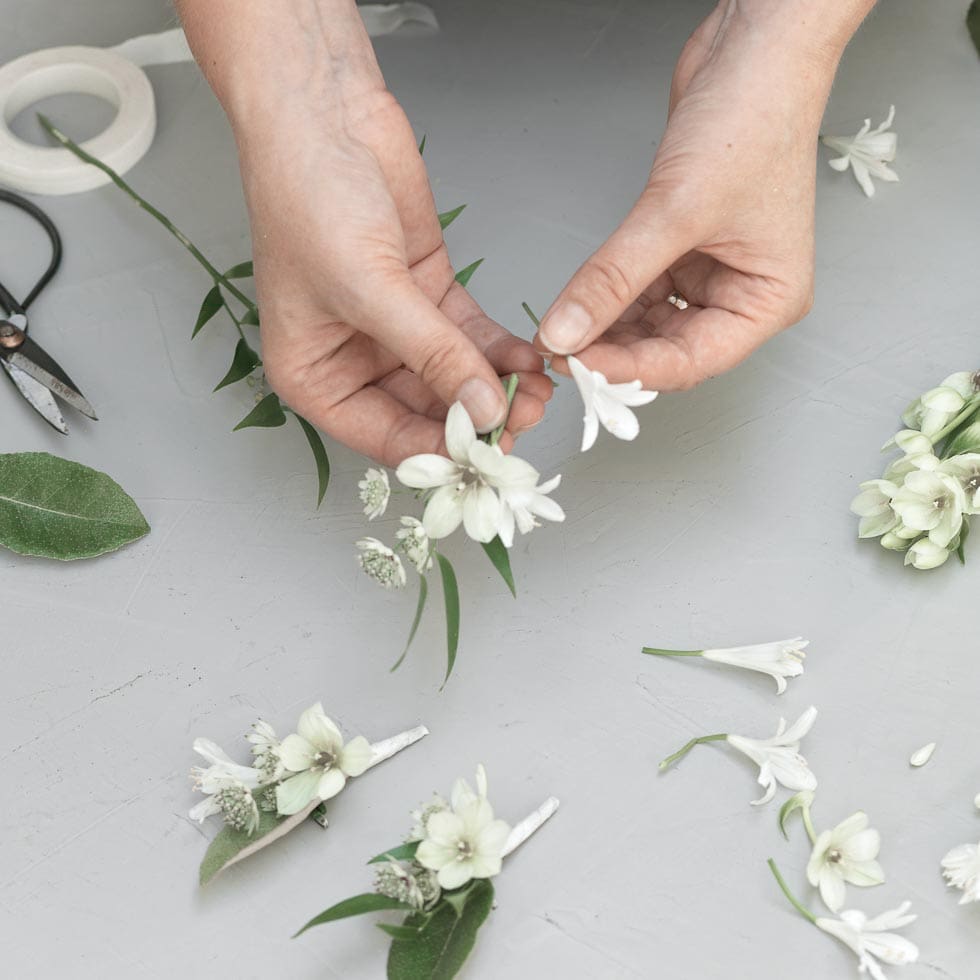Zusätzlich findet ihr hier eine Schritt für Schritt Anleitung, mit der ihr zauberhafte Ansteckblumen für eure Hochzeit auch ganz leicht selber machen könnt.