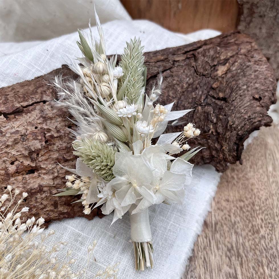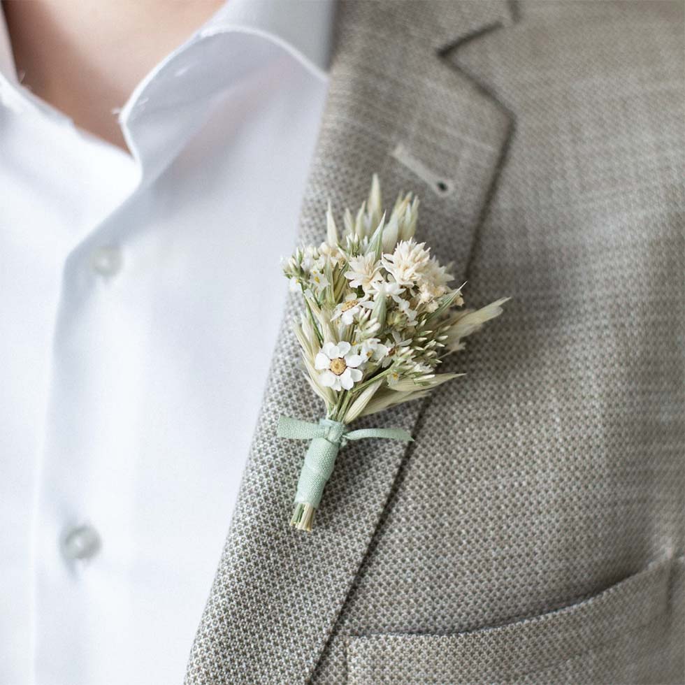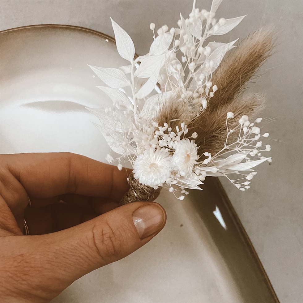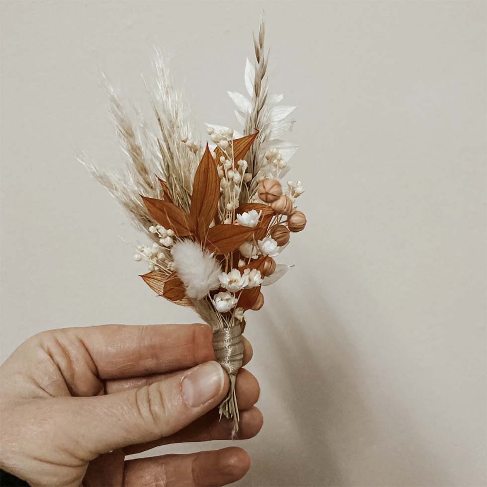 1 | Anstecker für den Bräutigam aus Trockenblumen