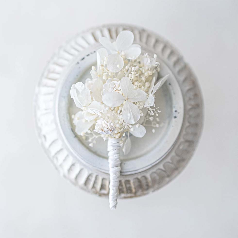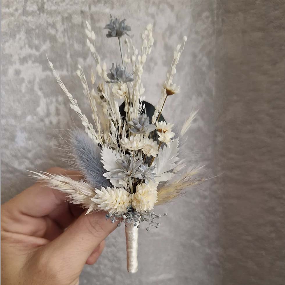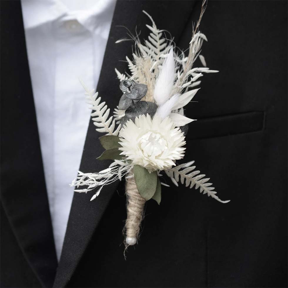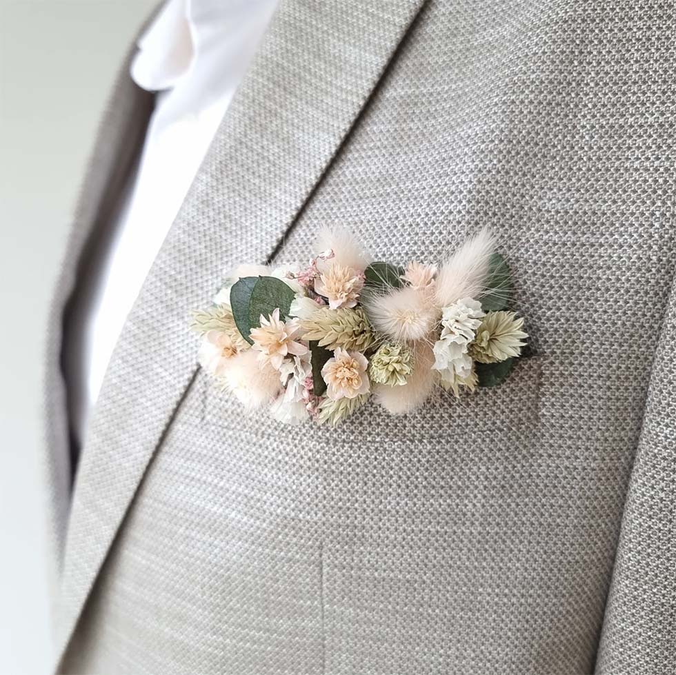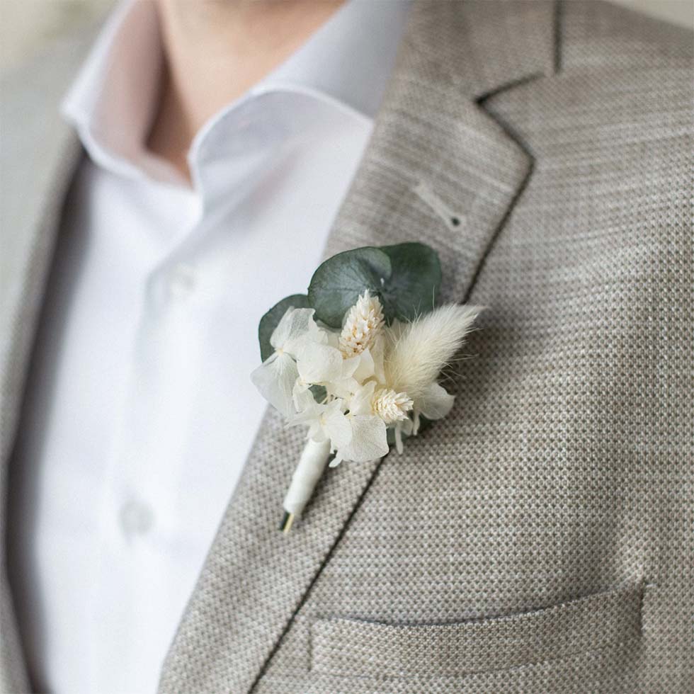 1 | Anstecker für den Bräutigam aus Trockenblumen