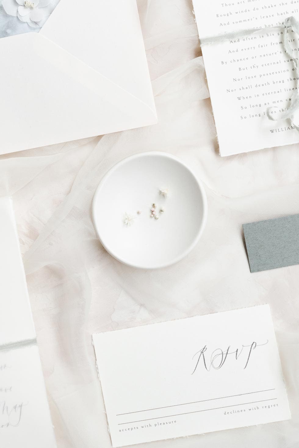 Mit einer Antwortkarte vergessen eure Gäste auf keinen Fall Bescheid zu geben, ob sie bei eurer Hochzeit dabei sein werden. Zusätzlich könnt ihr damit ganz praktisch im Vorfeld Menü-Wünsche, Übernachtungs-Optionen und viele weitere Infos einholen.