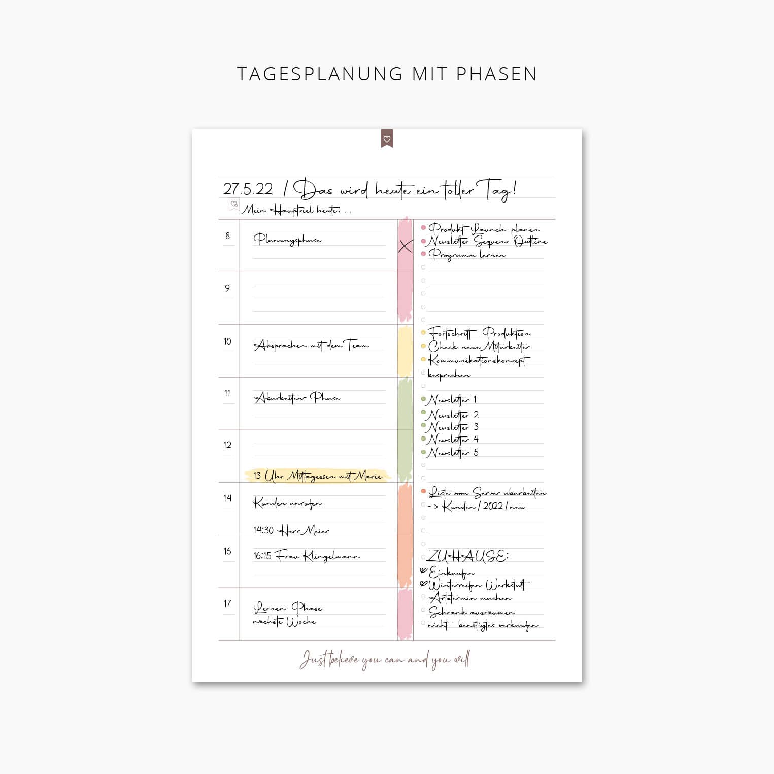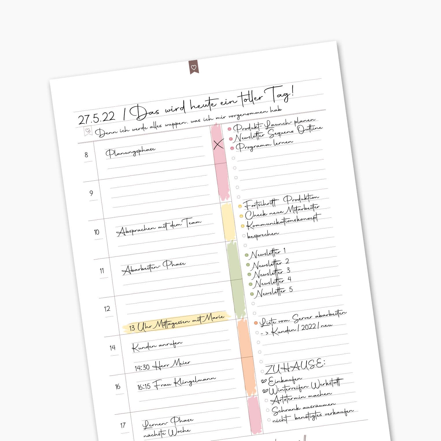 Habt ihr viele Termine oder unendlich viele kleine Aufgaben, die zu erledigen sind, könnt ihr euren Aufgabenplaner als Tagesplaner verwenden.