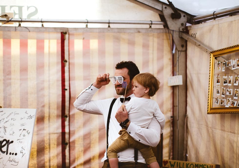 Christina und Jens bereiteten für ihre Gäste unzählige Dinge vor, die sie den ganzen Tag über entdecken konnten: Von sympathischen schwäbischen Tisch-Schildern über eine unkonventionelle Photobooth bis hin zum Dosenwerfen und Mega-Jenga wurden allerlei Hochzeitsideen herrlich ungezwungen umgesetzt.