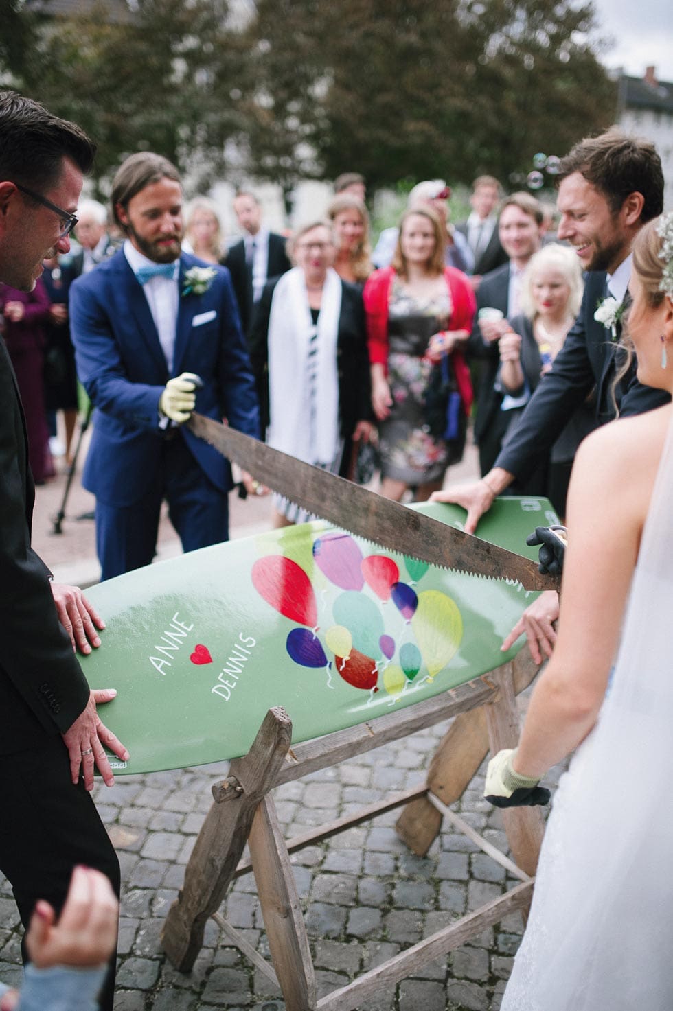 - Nehmt die oben stehende symbolische Bedeutung des Baumstammsägens als Erklärung für alle Gäste auf, damit sie den Hochzeitsbrauch verstehen können.