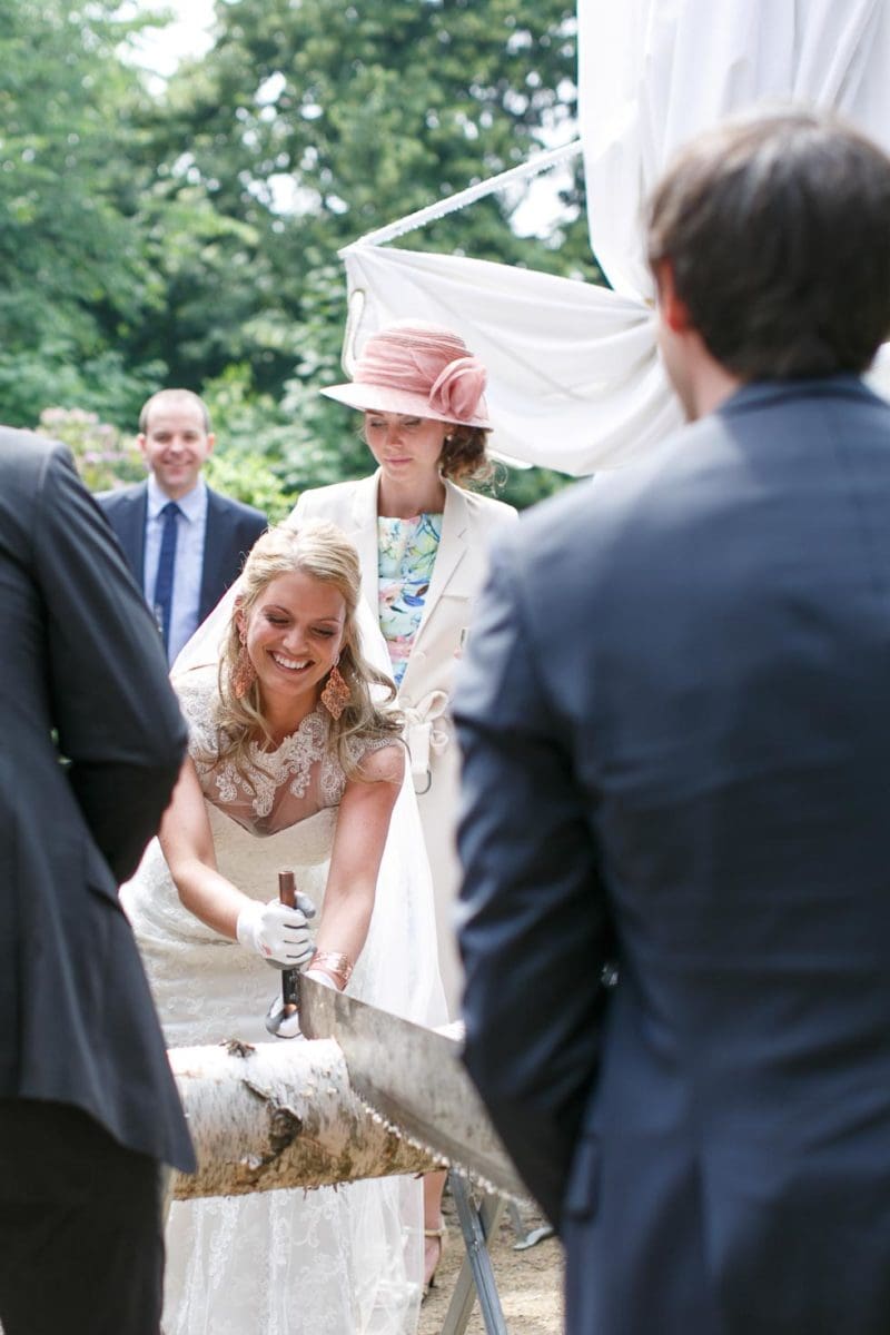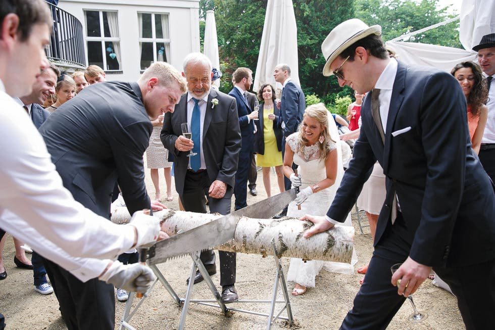 Die Tradition hinter dem Baumstamm-Sägen zur Hochzeit