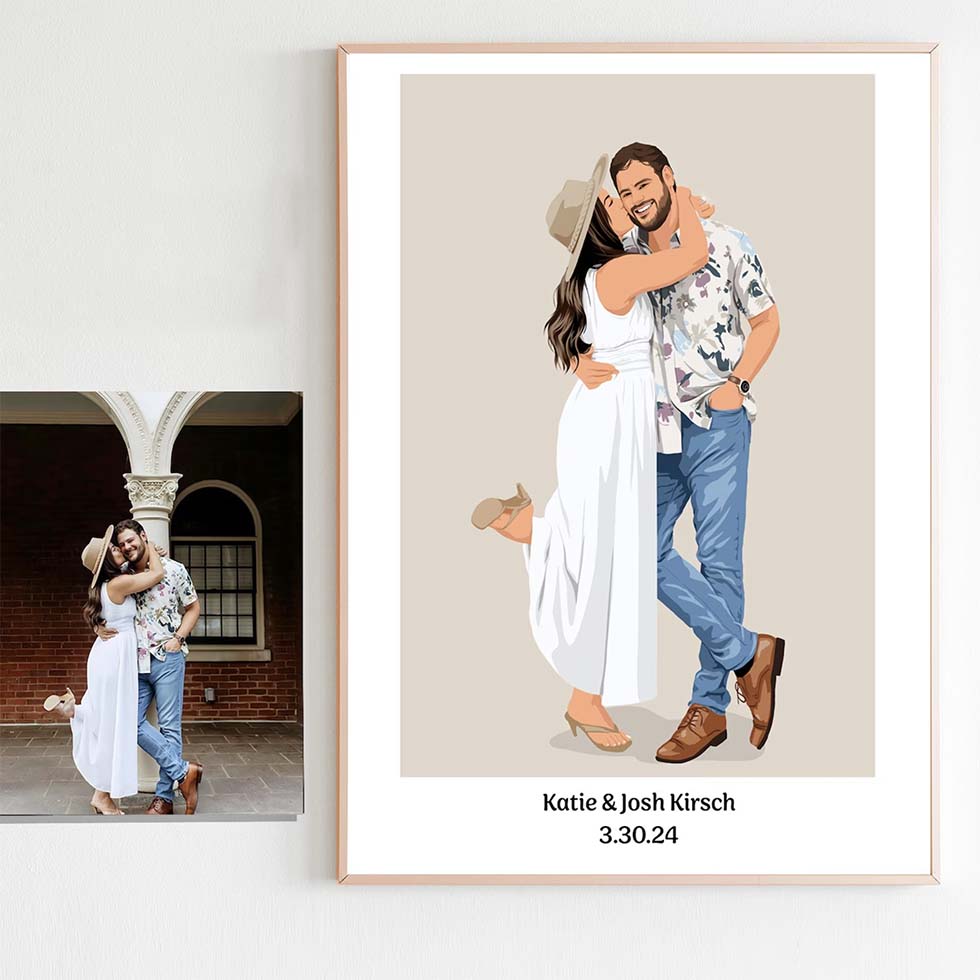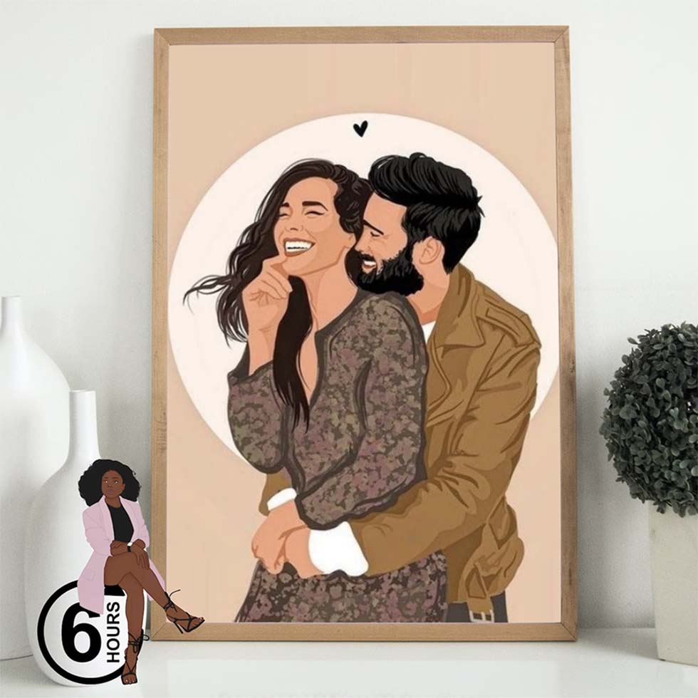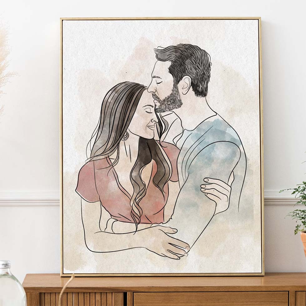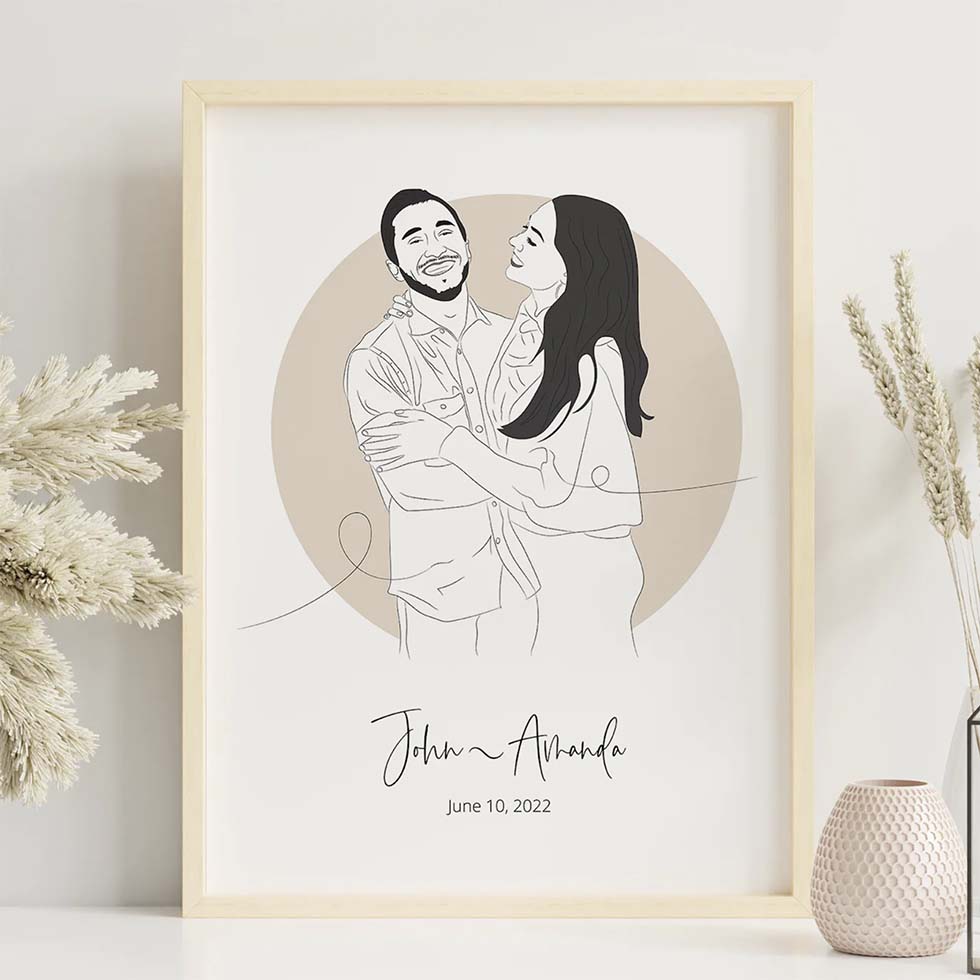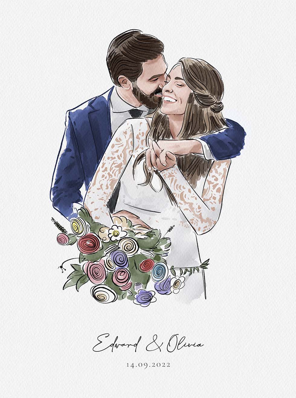Lasst euch ein wunderschönes individuelles Paarbild zum Hochzeitstag zeichnen: