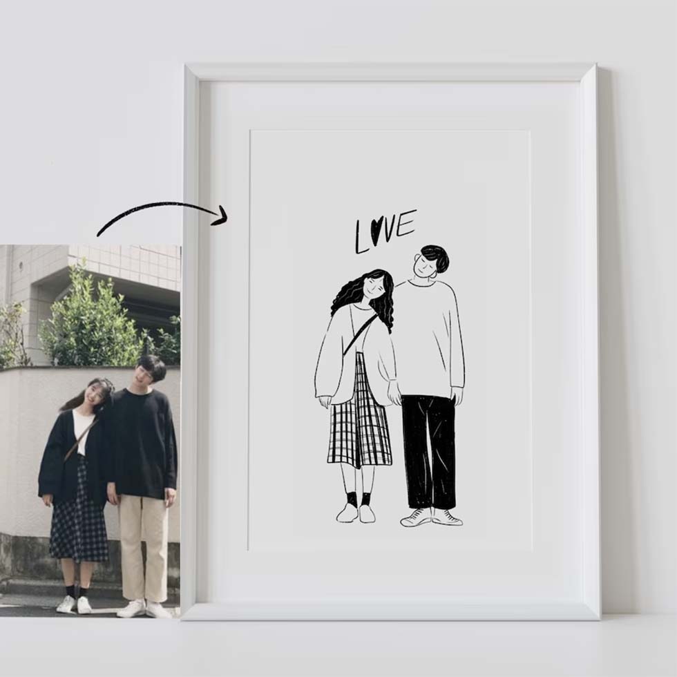 Strichzeichnung von eurem Paarfoto in verschiedenen Varianten