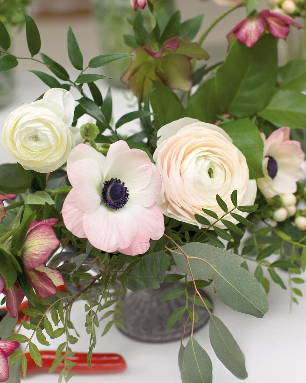 Für dieses Beispiel haben wir Frühlingsblumen, wie Anemonen und Ranunkeln verwendet. Ihr könnt aber jede beliebige Blüte verwenden, die gerade Saison hat.