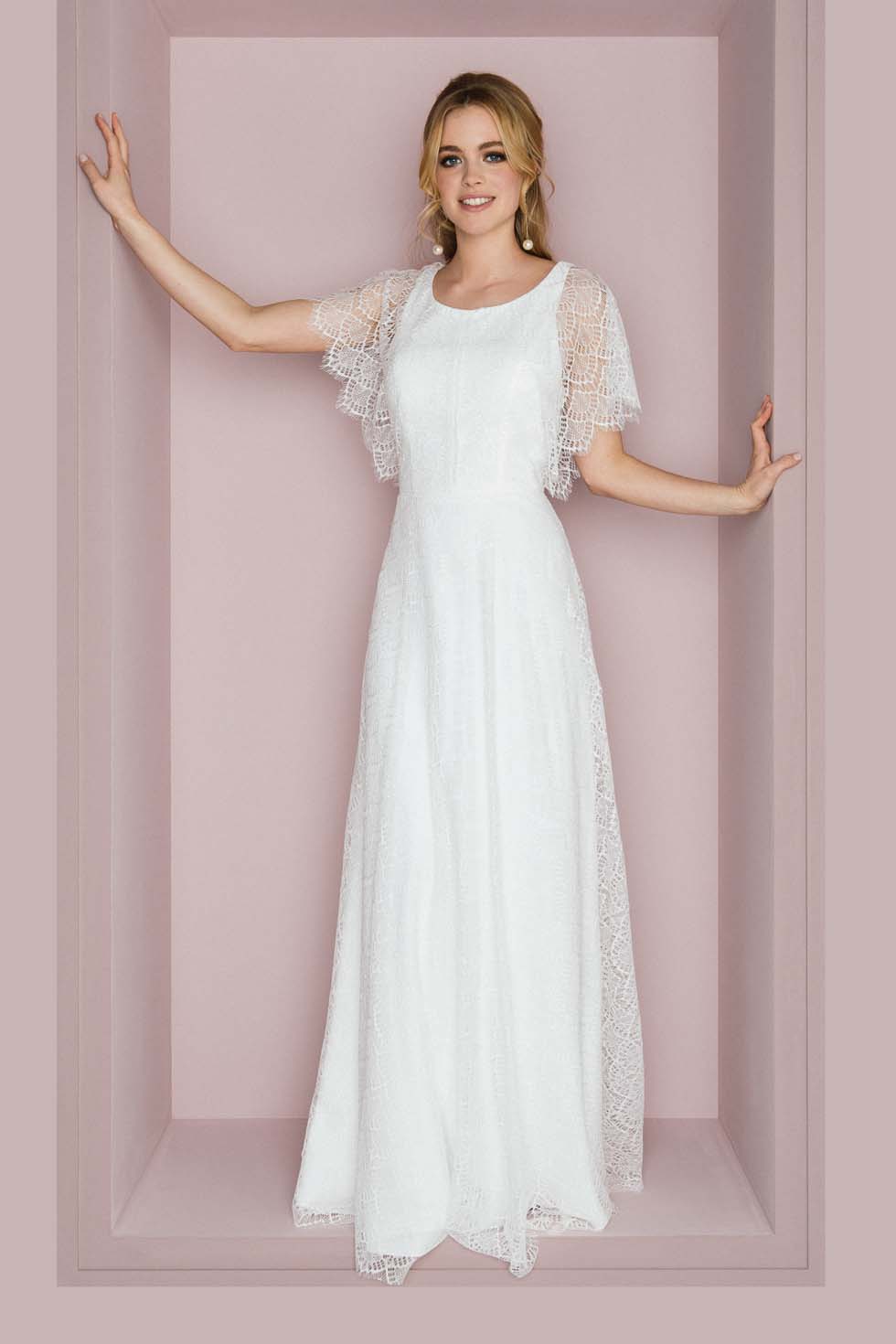 Deshalb stellen sie die kürzeste Ärmelform dar, mit der gerne verspielt-feminine Brautkleider verziert werden. Dabei bestehen sie entweder aus dem gleichen Material wie das Hochzeitskleid oder feiner Seide oder Spitze.