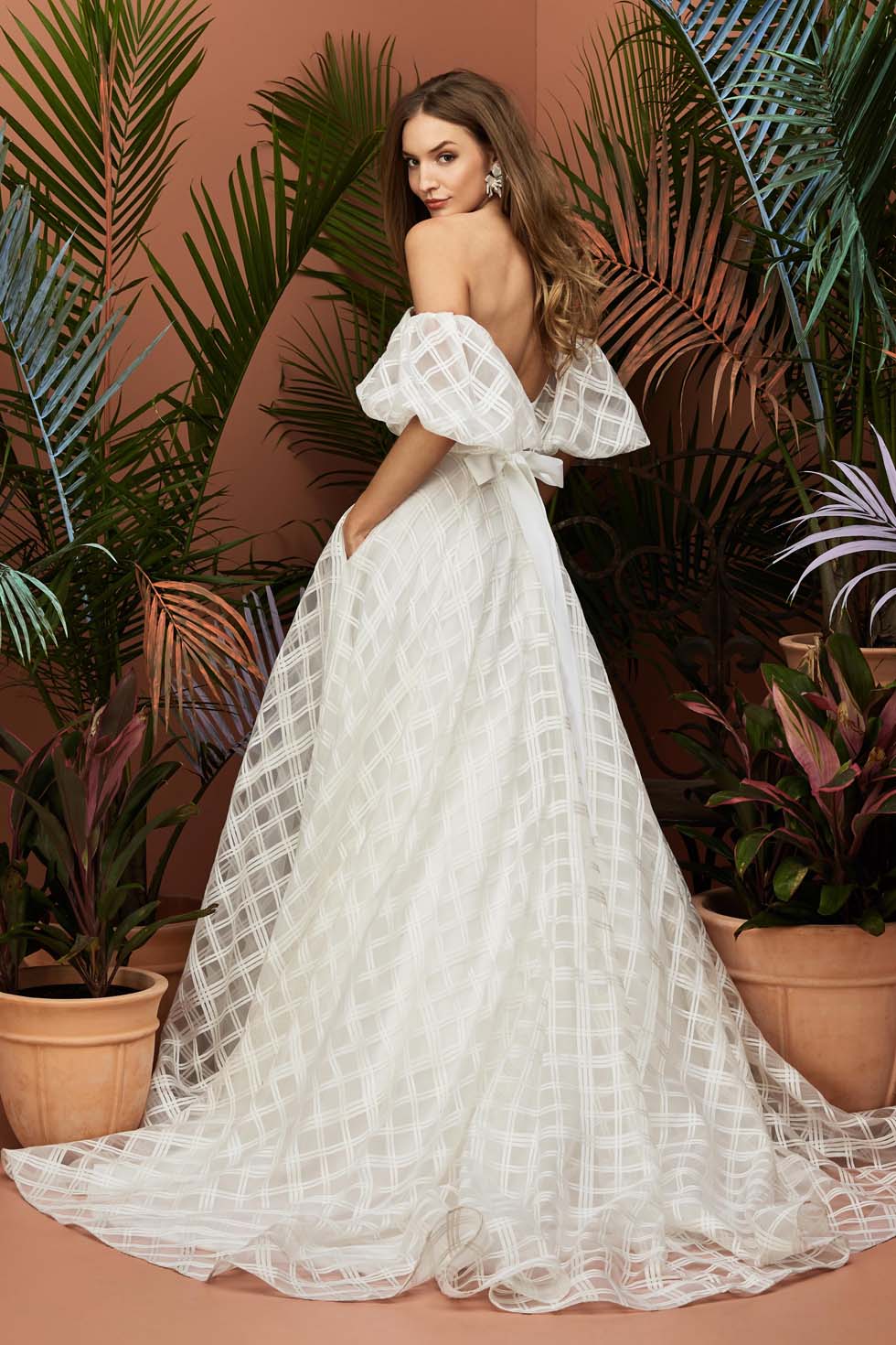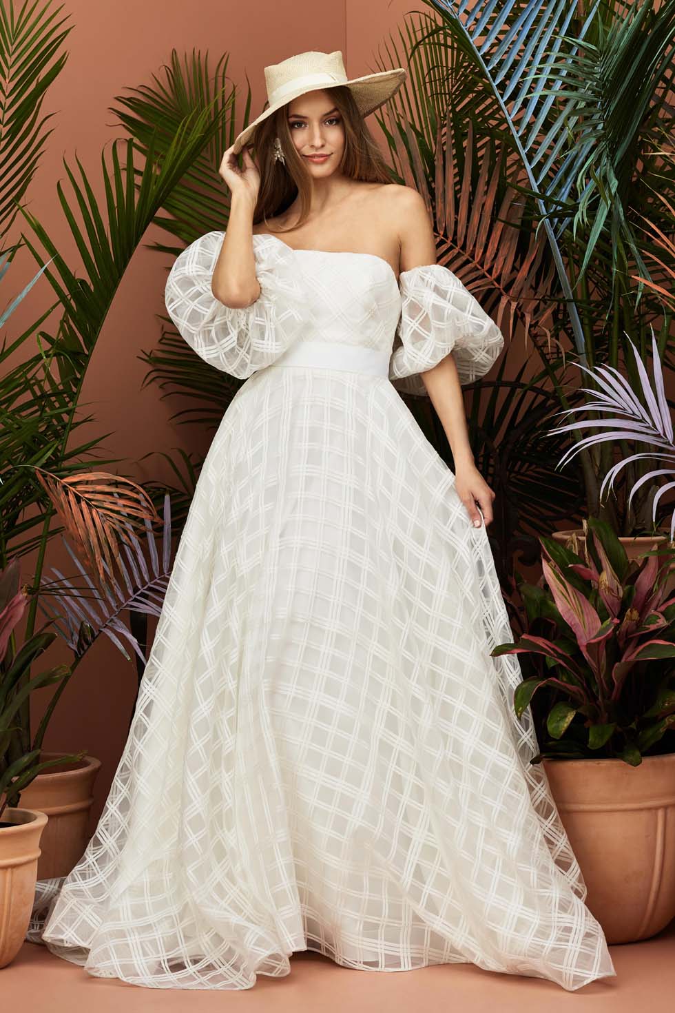 Dabei ist das Brautkleid mit Puffärmeln vor allem für schmale Schultern und schlanke Oberarme geeignet.