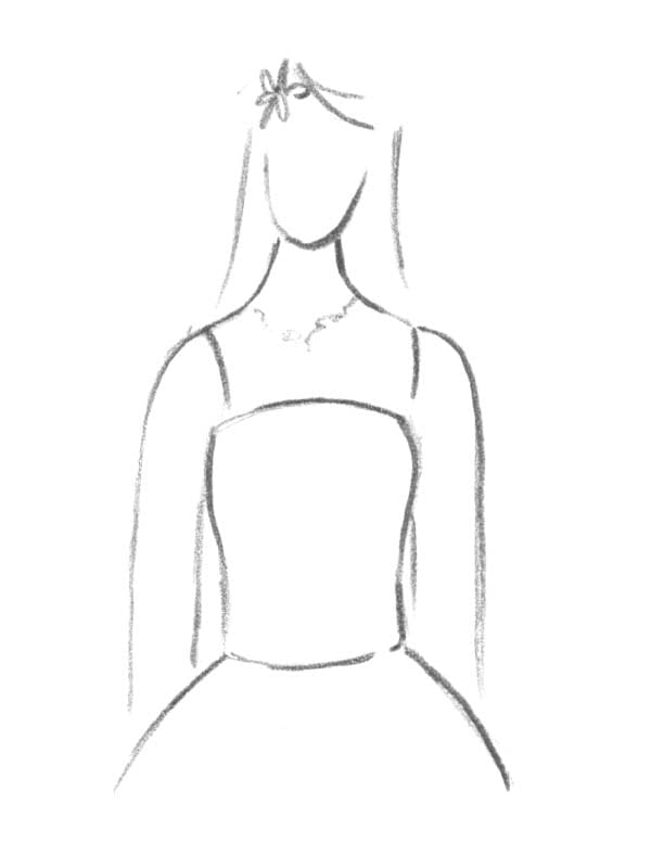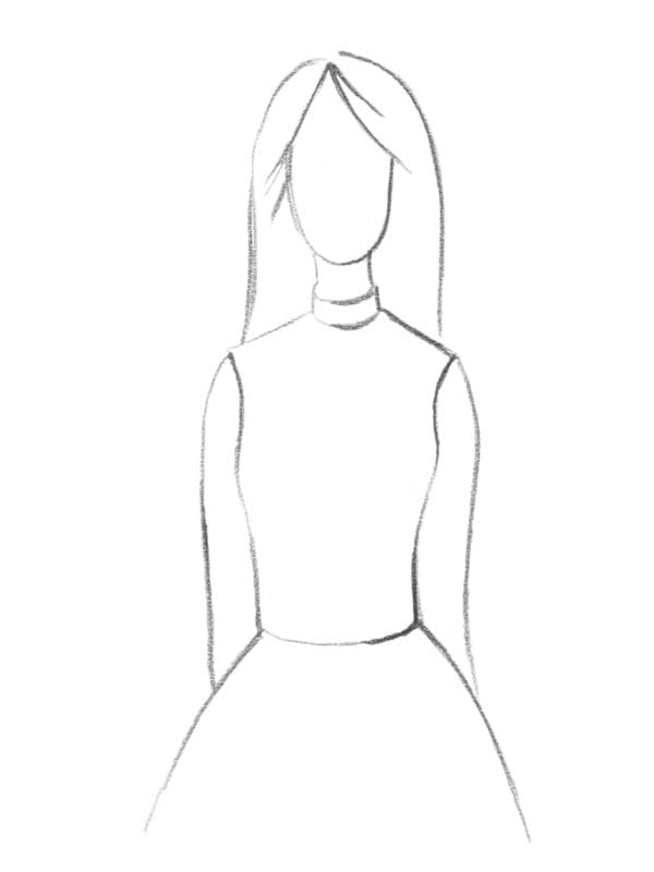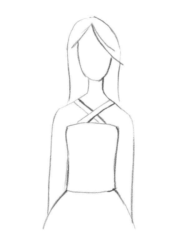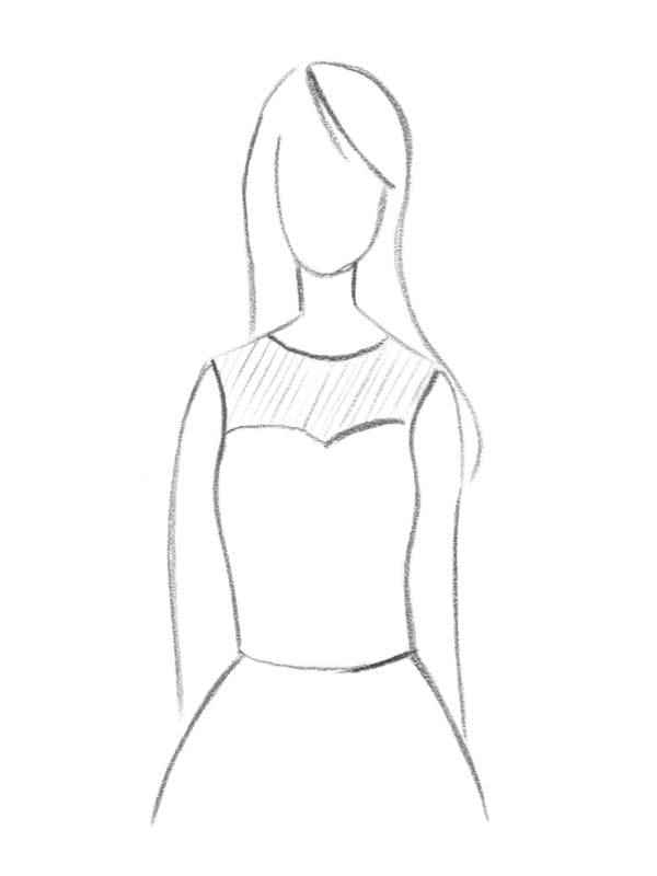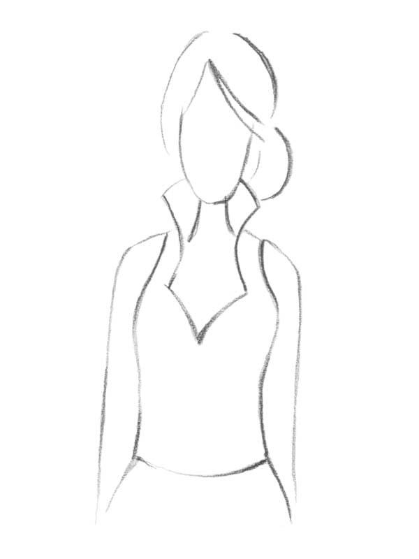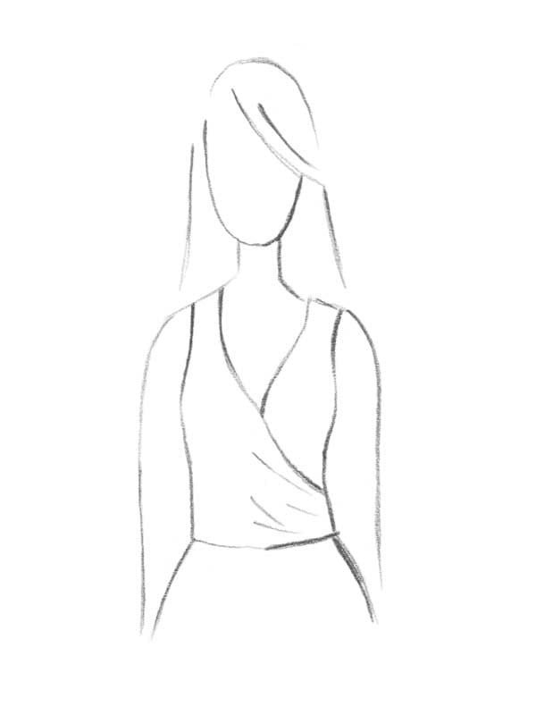 Der Oberkörper wird dadurch optisch gestreckt und der Blick liegt auf dem Dekolleté und Gesicht.