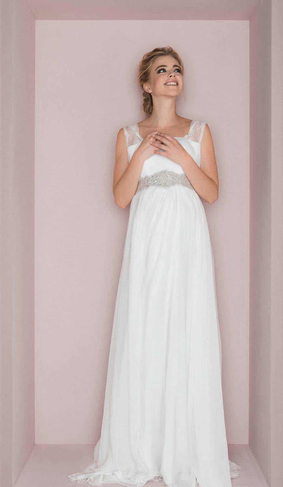 Deshalb kann der Empire Schnitt mit wirklich jeder Figur getragen werden – besonders schwangere Bräute lieben diese immer schmeichelnde Form.