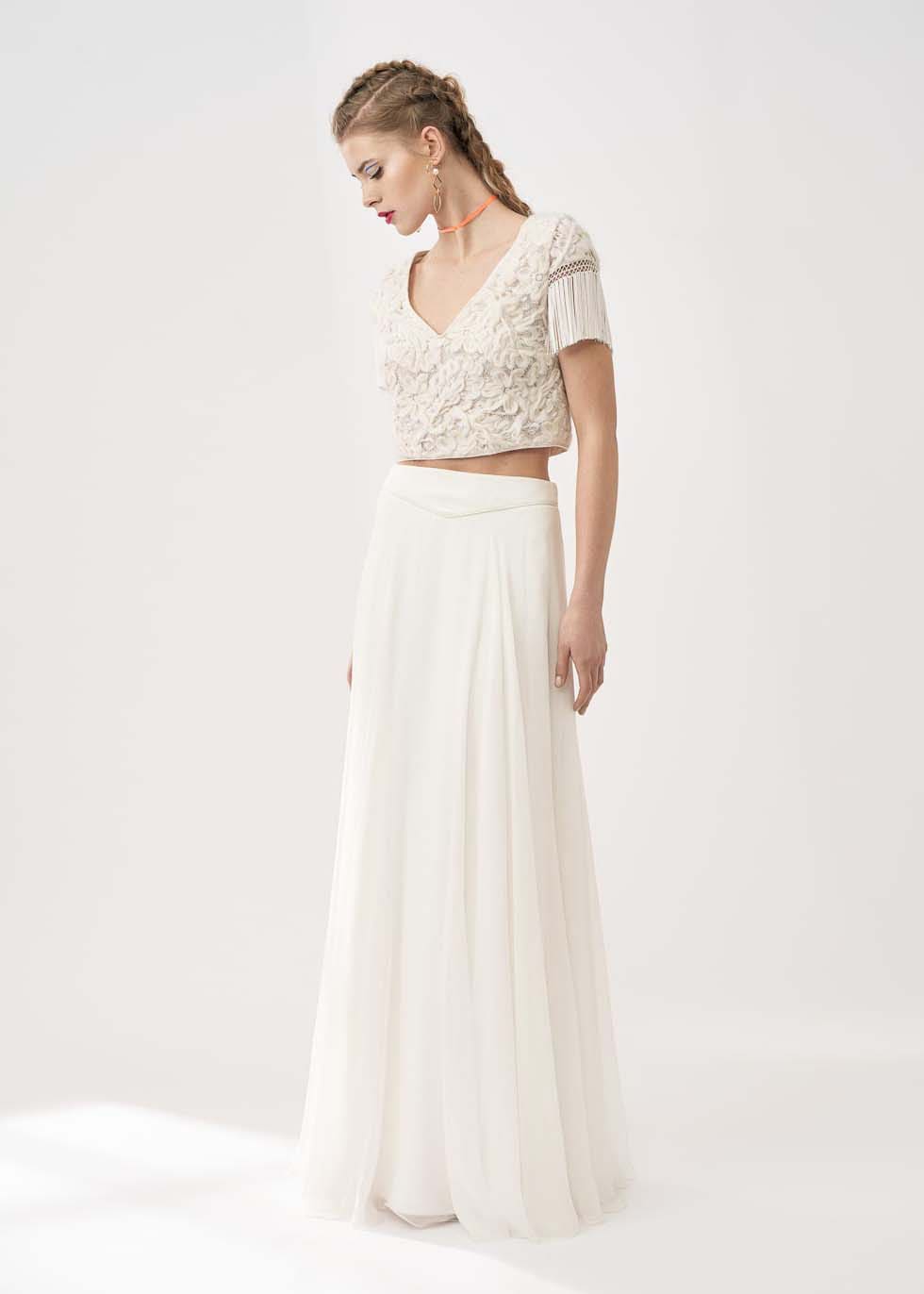 Dabei fällt der Rock ab der Taillennaht gerade herunter und besteht meist aus weich fließendem, leichten Stoff, der die Silhouette jeder Braut sanft umspielt.