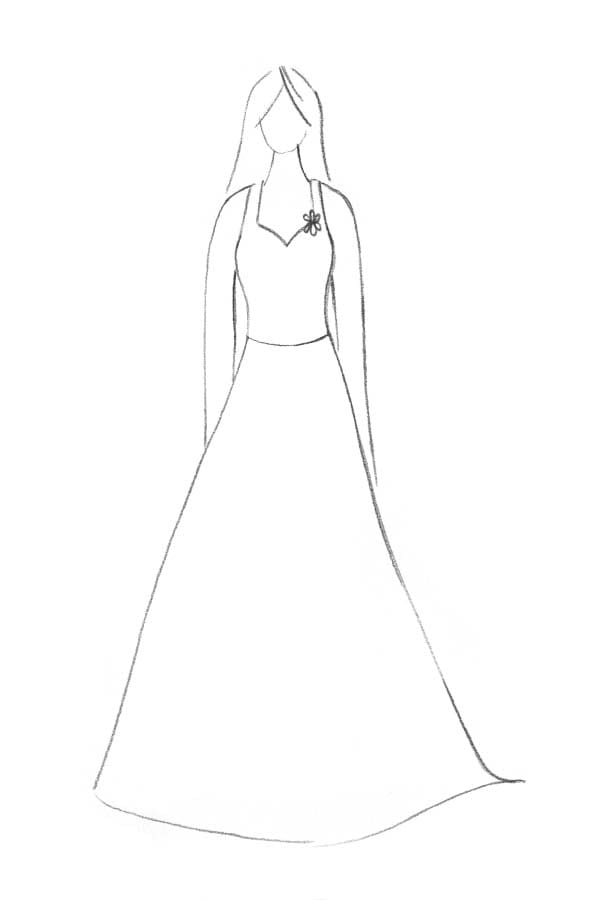 Dabei kann die Form des Rockes unterschiedlichste Formen – von weich fließend bis einem Duchesse-Sahnehäubchen – haben.