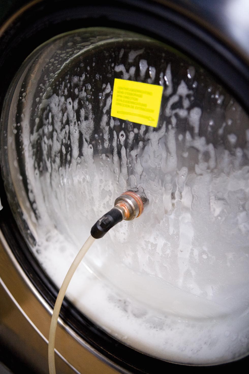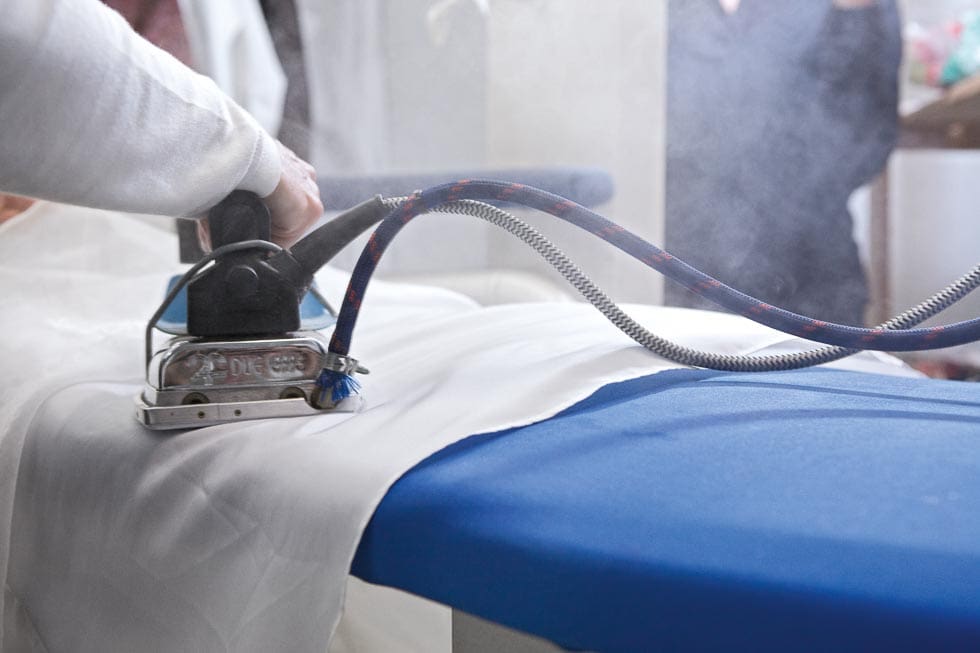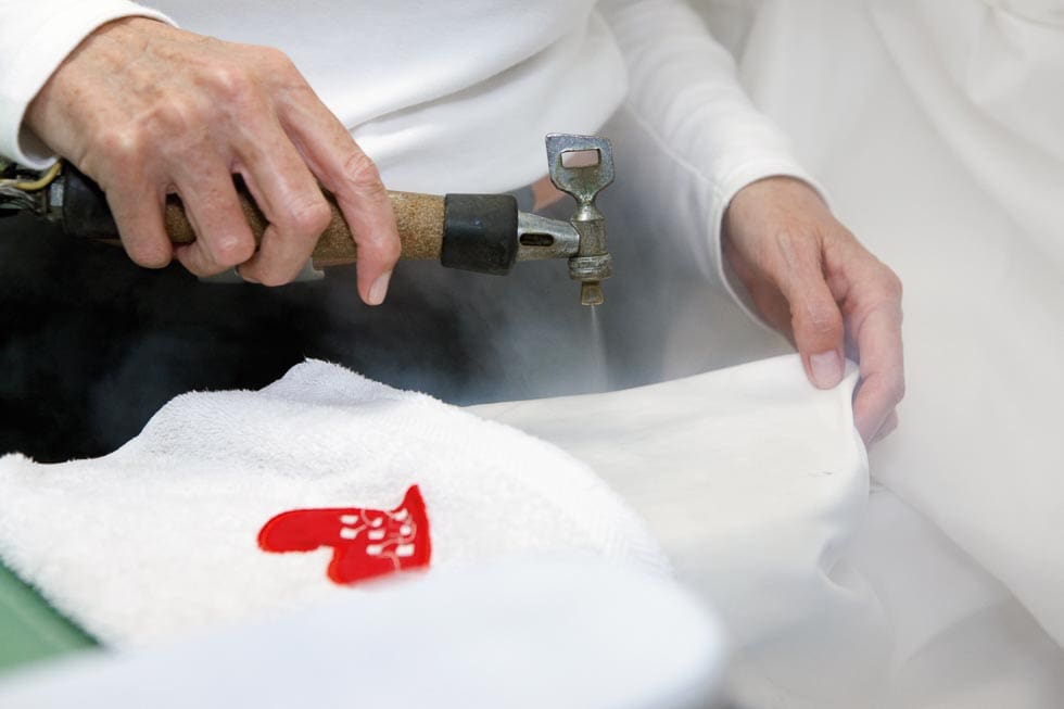 Nach dem Trocknen werden die Kleider noch einmal genau unter die Lupe genommen und auf Flecken überprüft. Sollte sich doch noch ein kleiner Fleckenteufel versteckt haben, wird er bedampft und verscheucht.