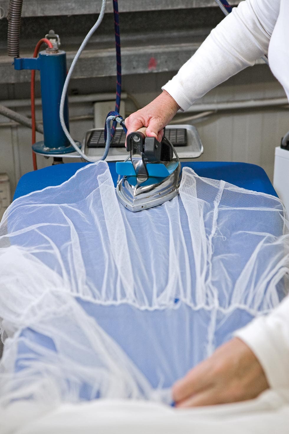 Damit ihr euer Brautkleid tatsächlich wie neu wieder zurück erhaltet, wird es liebevoll und schonend mit allen Accessoires von Hand gebügelt. Erst dann heißt es: Fertig für den Rückversand an die Kundin.