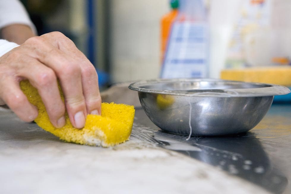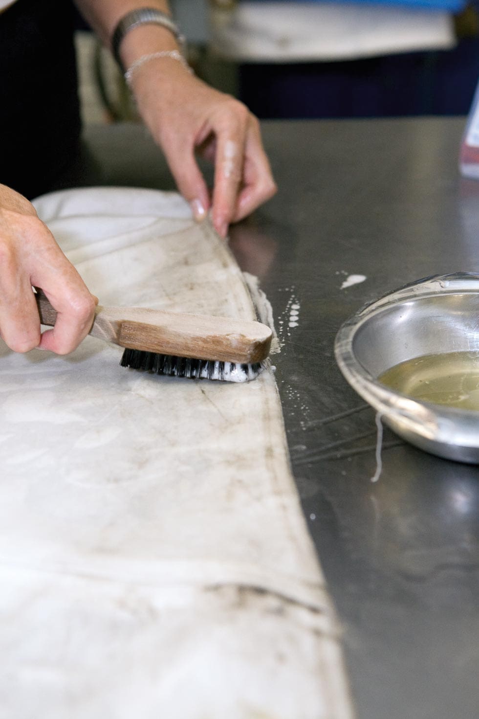 Jeder Fleck wird extra behandelt, denn für den Schmutz auf der Schleppe muss ein anderes Mittelchen als für den Tomatenfleck von der Vorspeise verwendet werden.