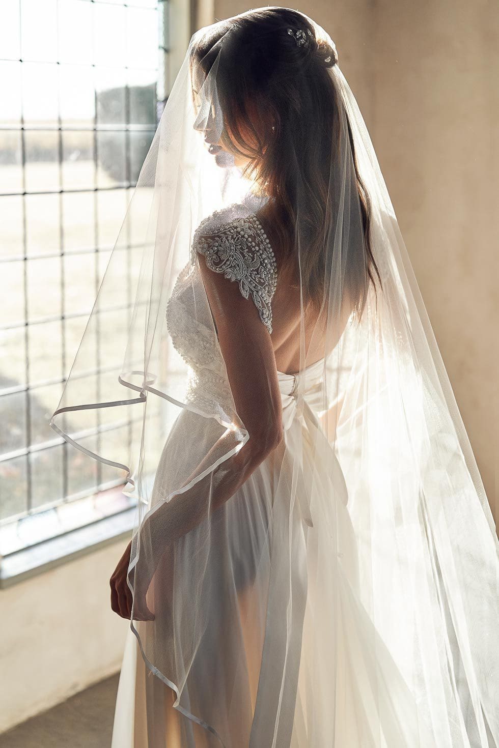 Brautschleier mit Satinsaum. | Fotos: Anna Campbell