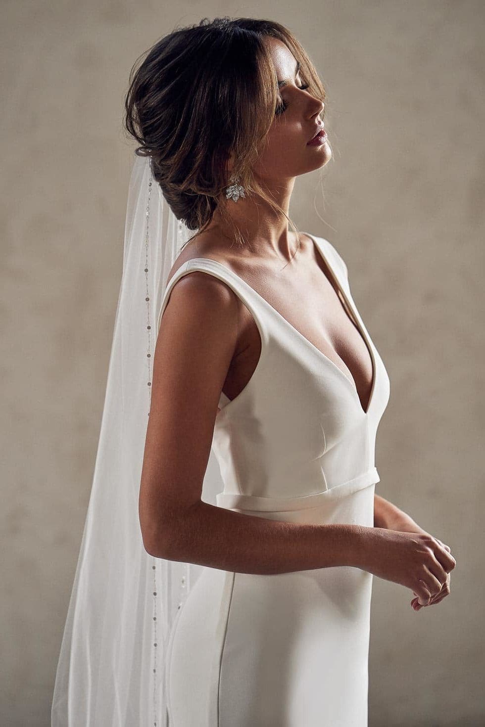 Dieser Brautschleier ist perfekt für: Etui Brautkleider & ovale sowie rechteckige Gesichtsformen