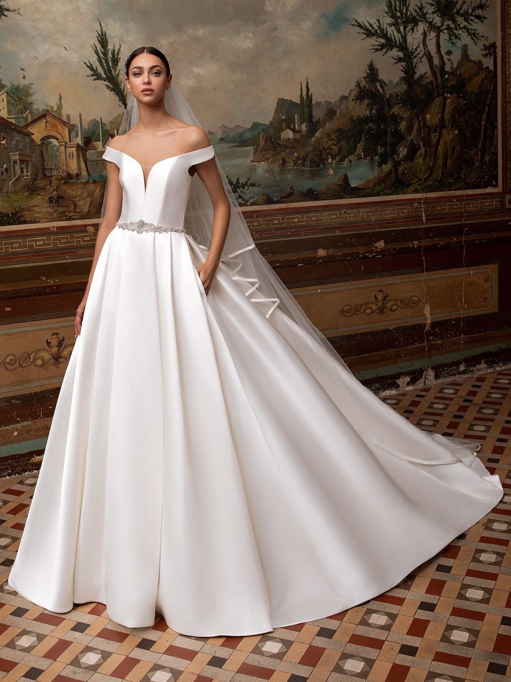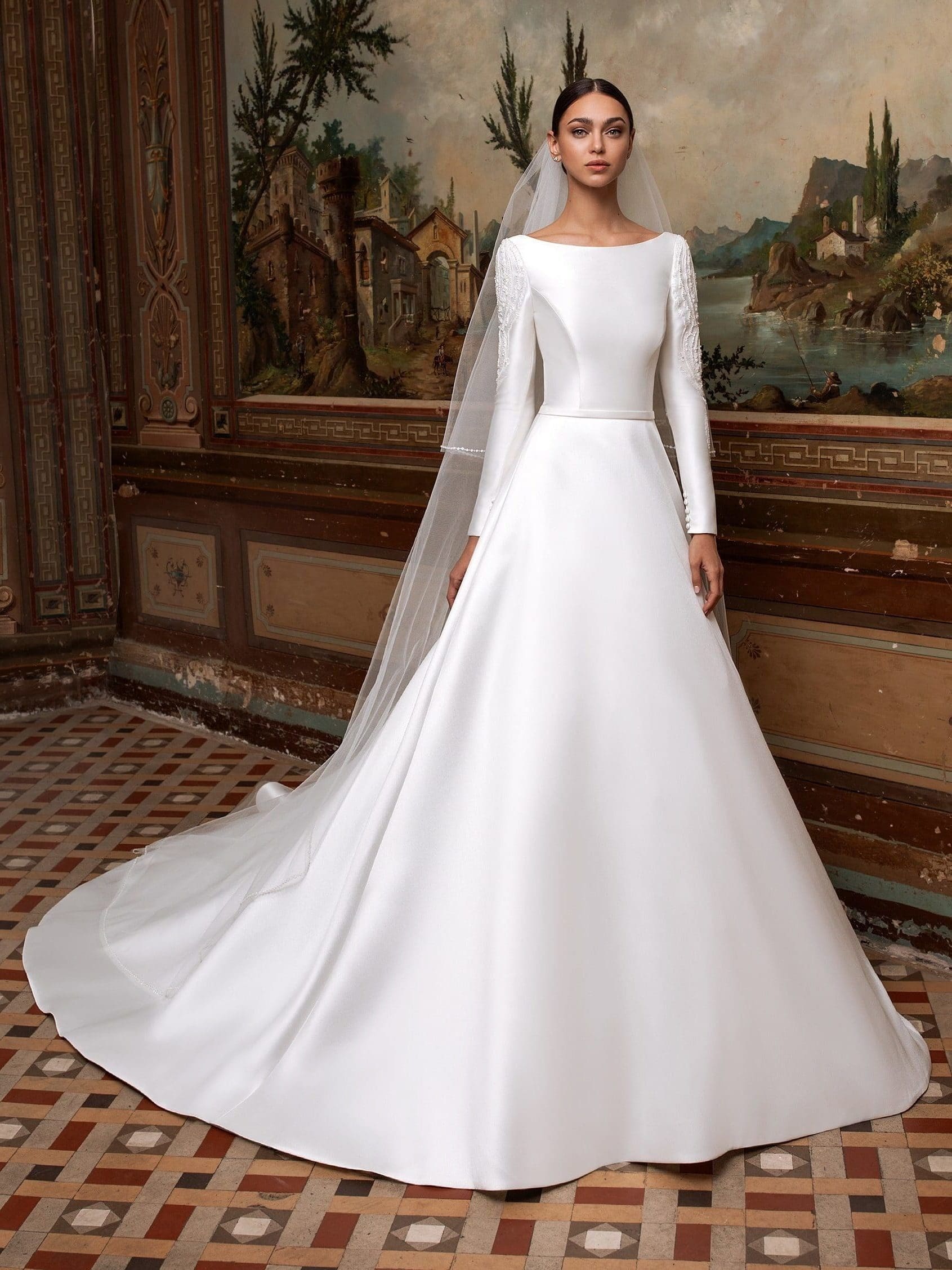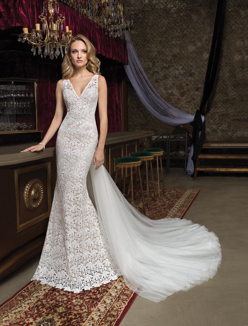 - Etui, Duchesse und Empire Brautkleider sowie Hochzeitskleider mit Schleppe