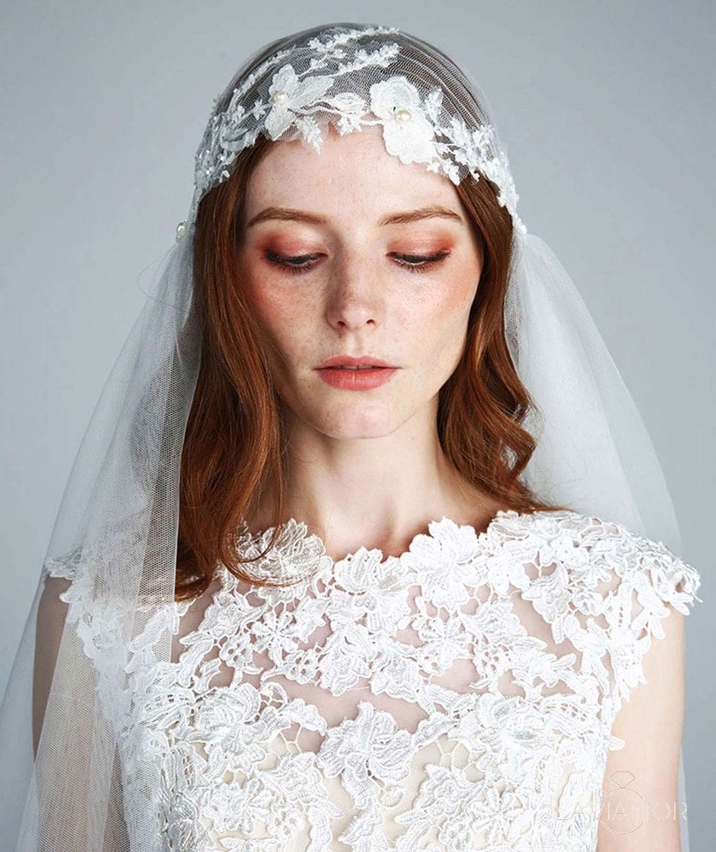 Mit ungefähr zehn bis 23 cm Länge gehört er zu den kürzesten Brautschleiern.