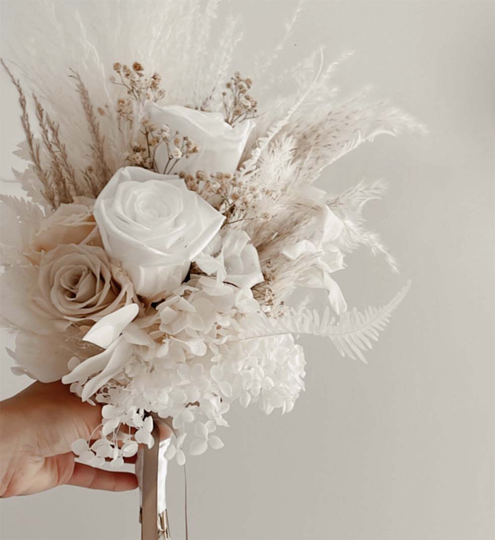 Diese wunderschönen Sträuße aus Trockenblumen könnt ihr online bestellen und so wie sie sind für die Ewigkeit aufbewahren, da auch die Rosen stabilisierte Eternity-Rosen sind.