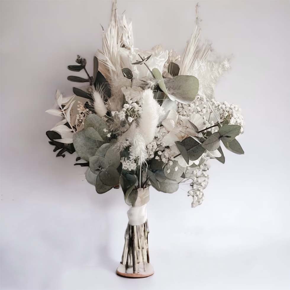 Brautstrauß mit Pampasgras, Schleierkraut und Eukalyptus