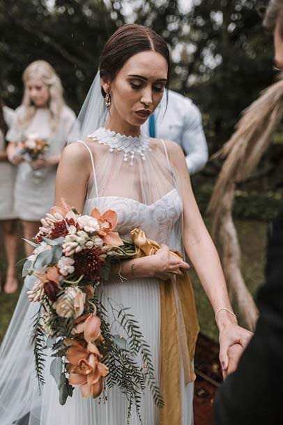 Auch eine tolle Alternative zum klassischen Brautstrauß – vor allem zum Hosenanzug oder extravaganten Brautkleidern.