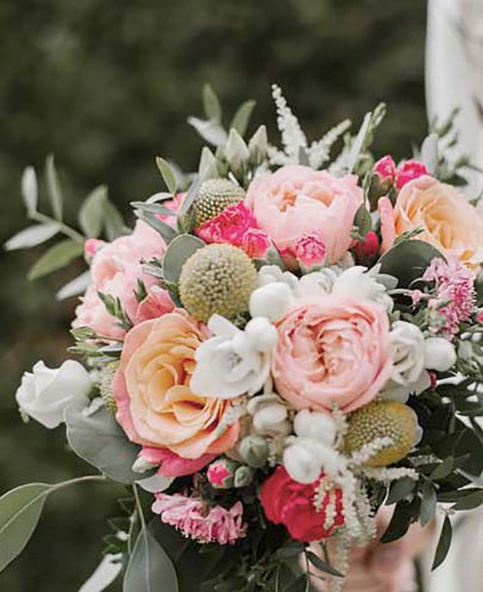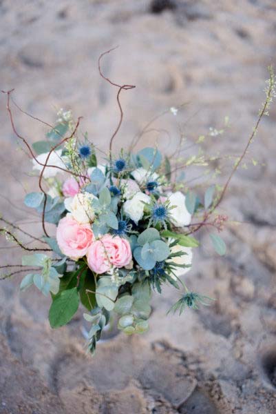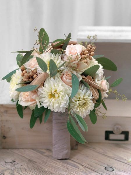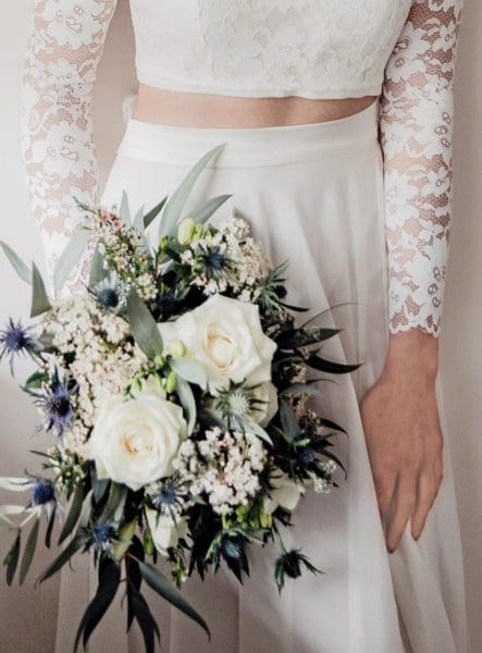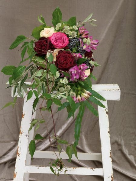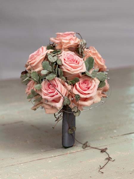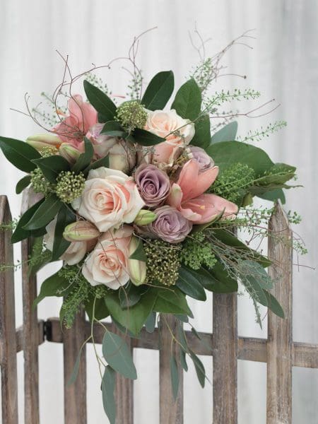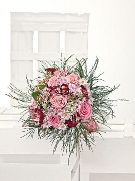 Das Geniale ist: Man kann Rosen mit allen Blüten kombinieren und so immer wieder die verschiedensten Stile erhalten. Deshalb bieten sich Rosen sowohl für lässige Boho Brautsträuße an als auch für klassische Brautsträuße.