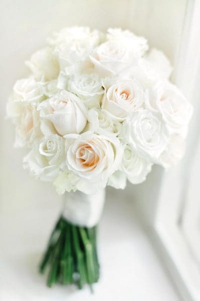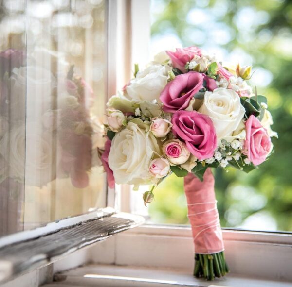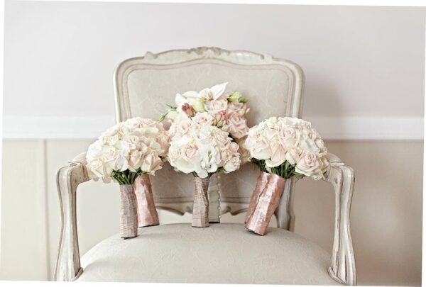 Rosen müssen etwa drei Tage vor der Hochzeit gekauft und in Zimmertemperatur gelagert werden, damit sie am Hochzeitstag optimal geöffnet sind. Nur so entfalten sie im Brautstrauß ihre volle Schönheit.