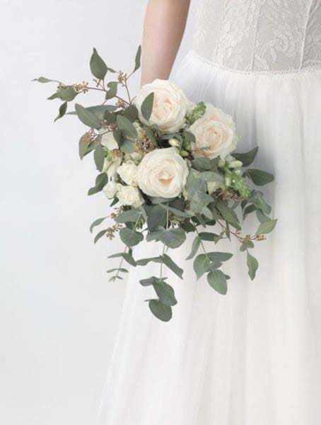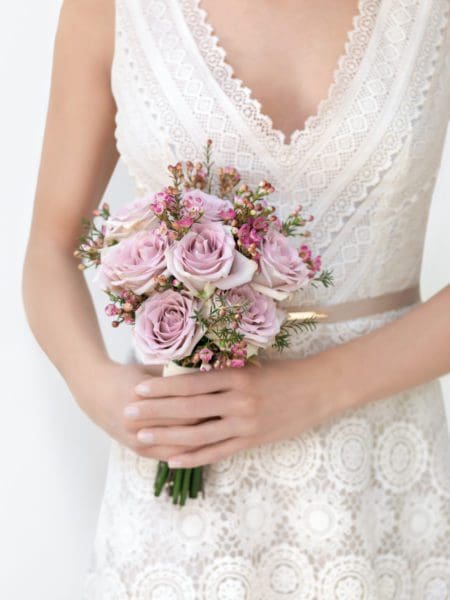 Ob Boho-Brautstrauß mit weit geöffneten Rosenblüten, eleganter Brautstrauß mit eng gebundenen weißen Rosen oder klassisch-romantischer Hochzeitsstrauß – Rosen fehlen in kaum einem Straußdesign für die Hochzeit. Kein Wunder, denn sie bieten nicht nur die unterschiedlichsten Formen, Größen und Farben und schenken euch unendliche Gestaltungsmöglichkeiten für alle Stilrichtungen.