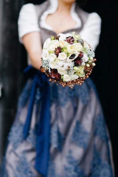 Traditionell bestellt der Bräutigam den Brautstrauß, wählt die Blumen aus und holt ihn am Hochzeitsmorgen frisch beim Floristen ab – mancherorts übernimmt das auch die Schwiegermutter.