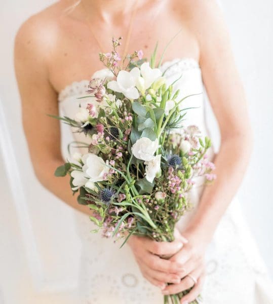 Besonders schön ist es übrigens auch, wenn ihr dem Stiel des Straußes in Bezug auf die Gestaltung etwas mehr Aufmerksamkeit schenkt. Von großen Schleifen über Spitzendetails gibt es unzählige Möglichkeiten, die wir in unseren Beispielen zeigen.