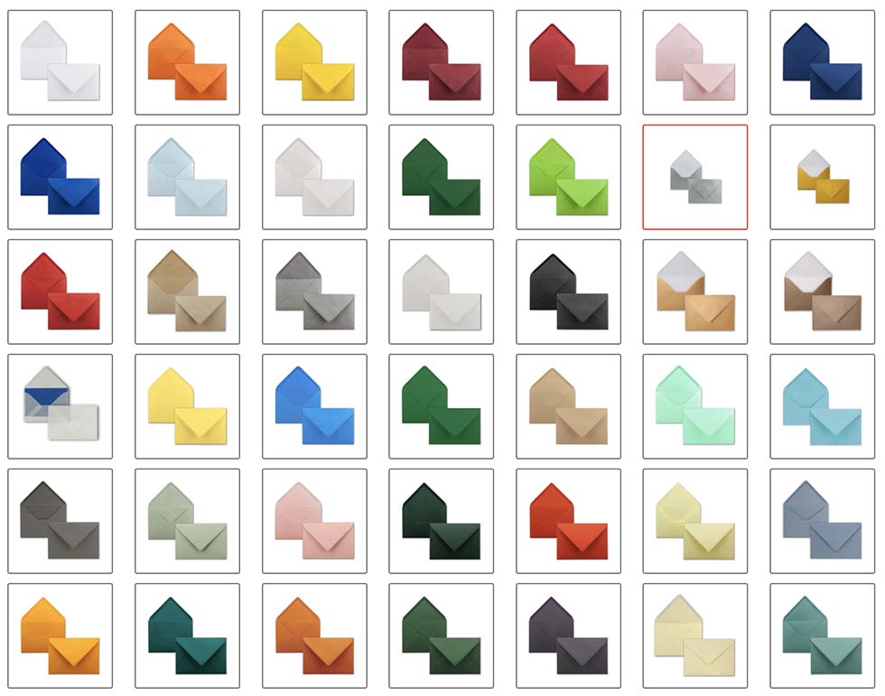 Druckt ihr eure Einladung oder die Danksagung auf dickes Papier mit Büttenstruktur, könnt ihr auch ein Kuvert mit dieser besonderen Struktur ergänzen.