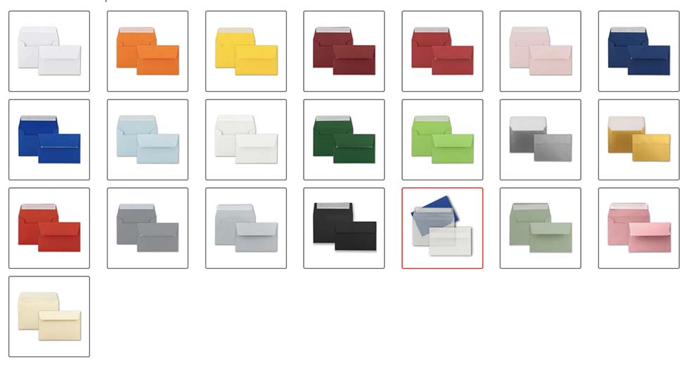 Diese Briefumschläge erhaltet ihr in verschiedenen Farben und Papier-Grammaturen von 80 g/m² bis 120 g/m². Je höher die Grammatur, desto hochwertiger wirkt eure Briefsendung.